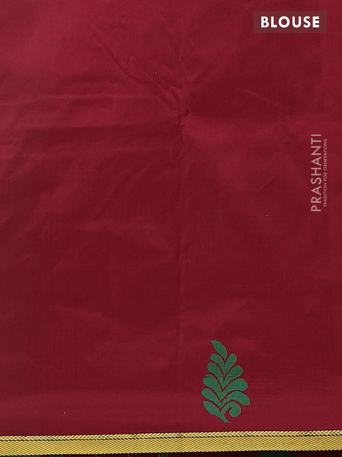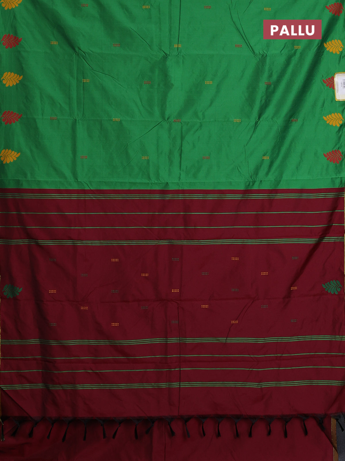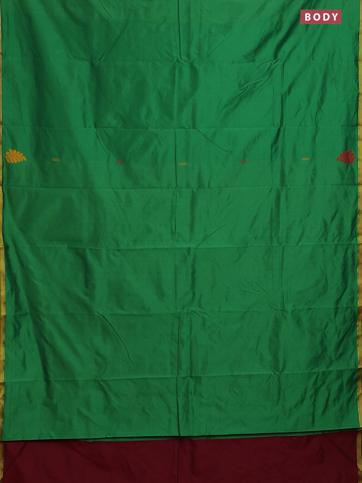 Arani semi silk saree green and maroon with thread woven buttas and piping border