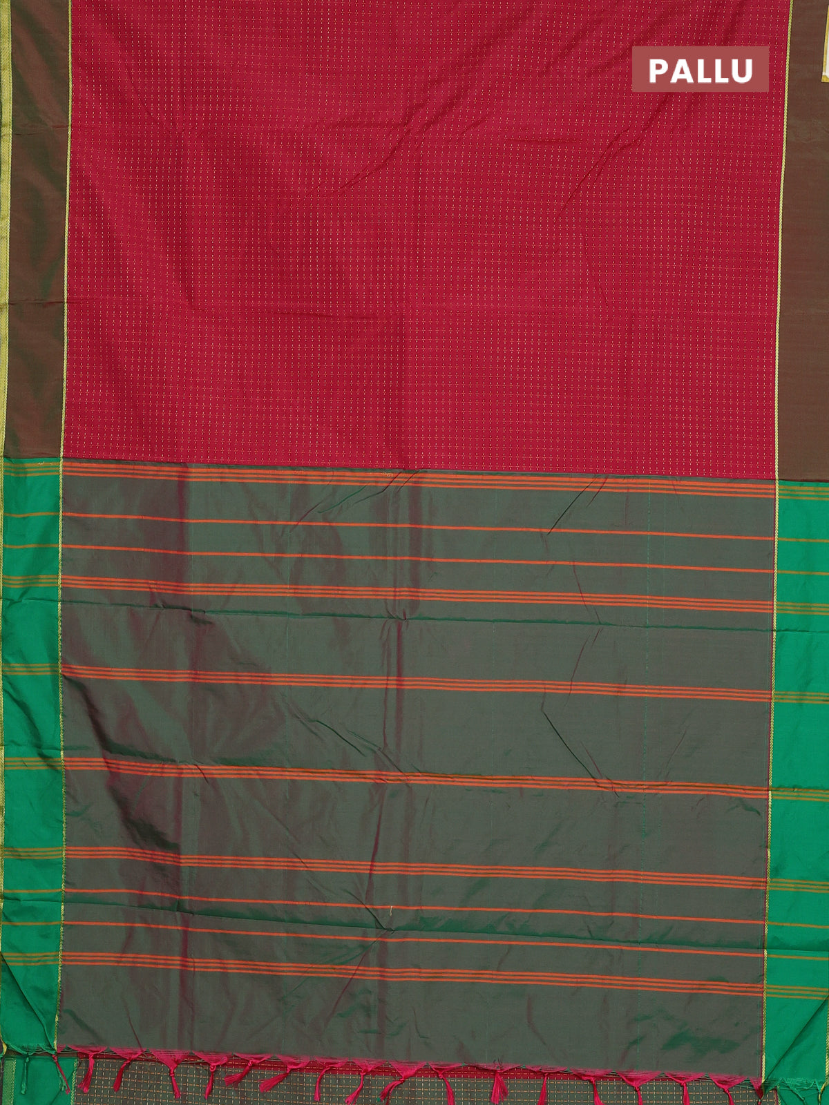 Arani semi silk saree maroon and dual shade of pinkish green with allover thread weaves and rettapet zari woven border`