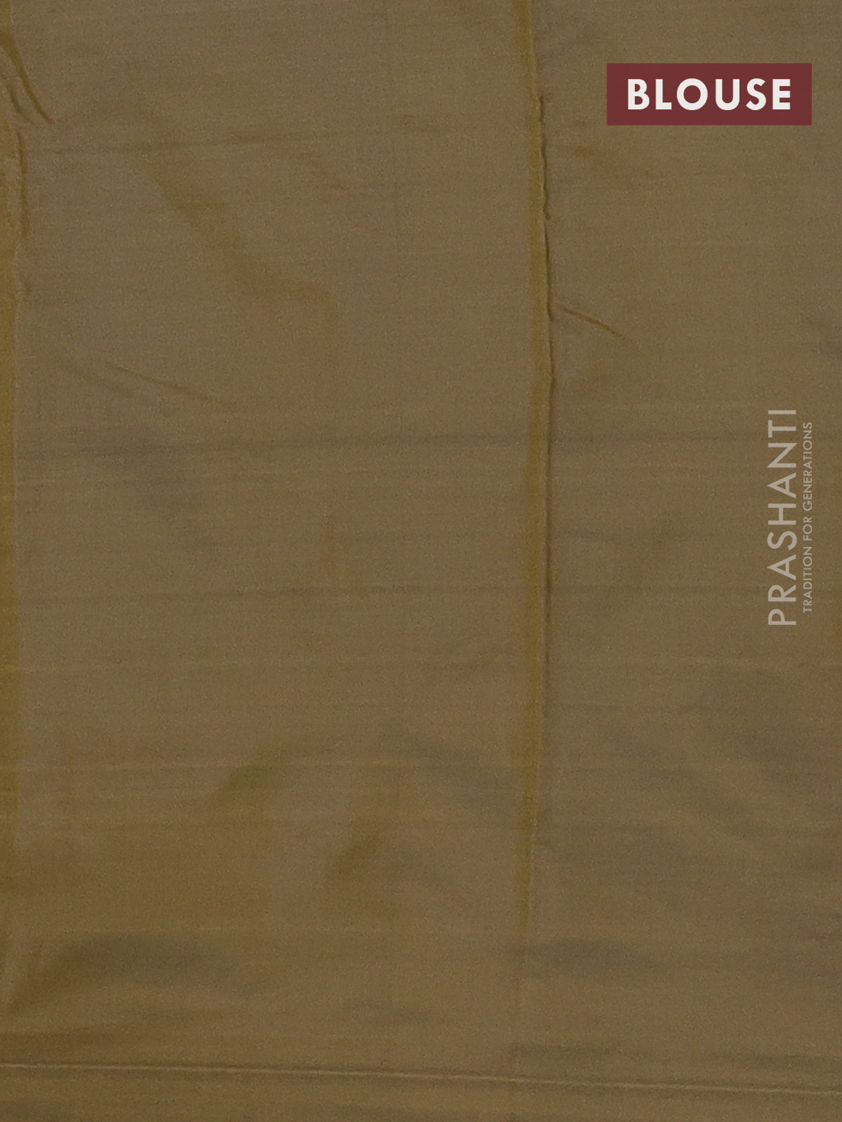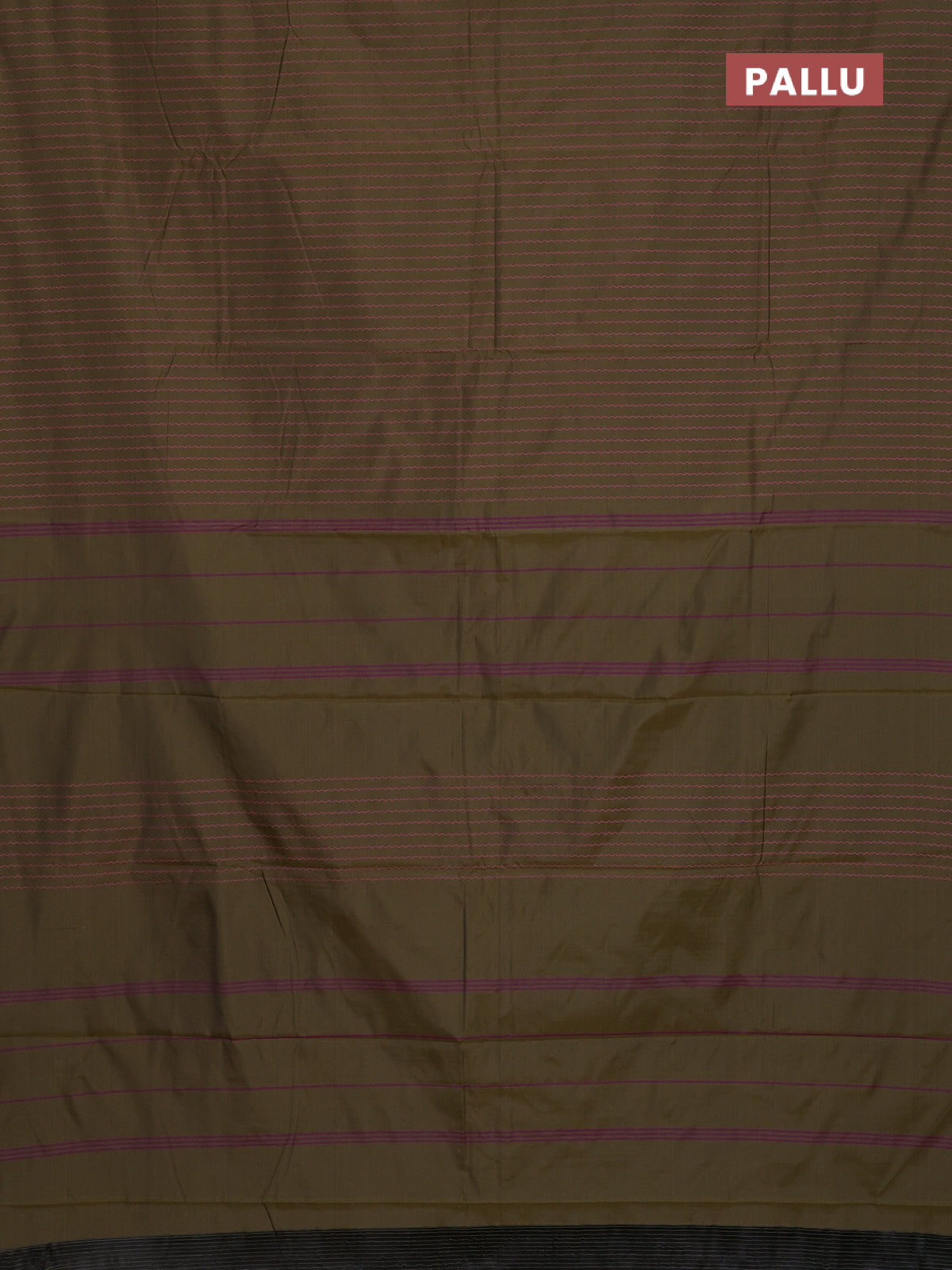 Arani semi silk saree military green with allover thread weaves in borderless style