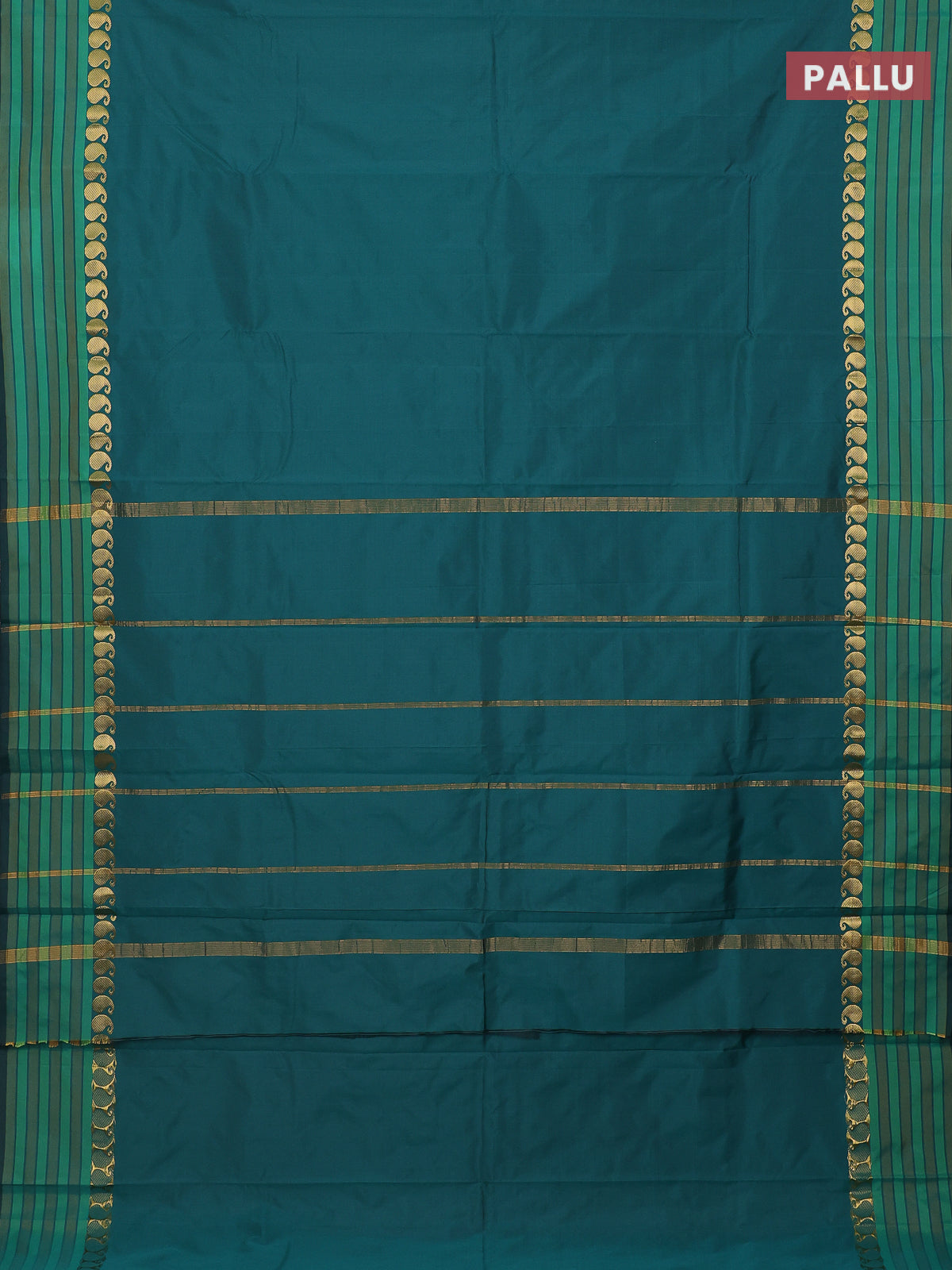 Arani semi silk saree peacock green and green with plain body and paisley zari woven simple border