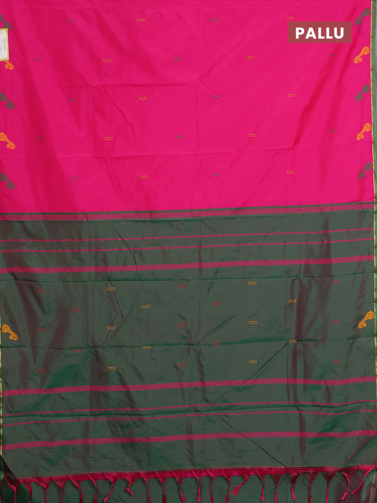 Arani semi silk saree pink and dual shade of green with thread woven buttas and thread woven butta border
