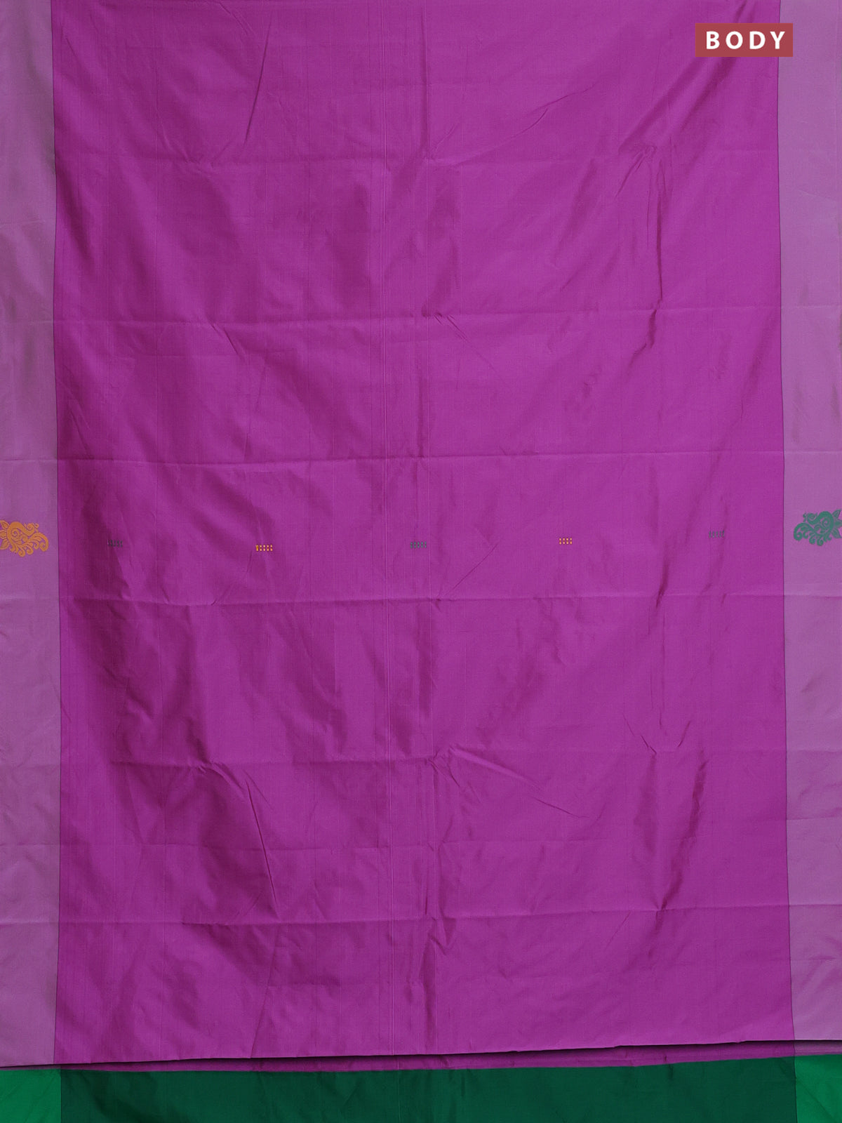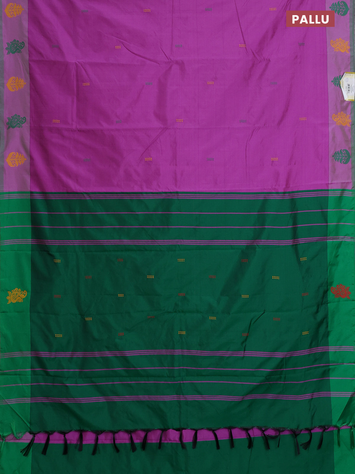 Arani semi silk saree purple shade and dual shade of green with thread woven buttas and thread woven butta border