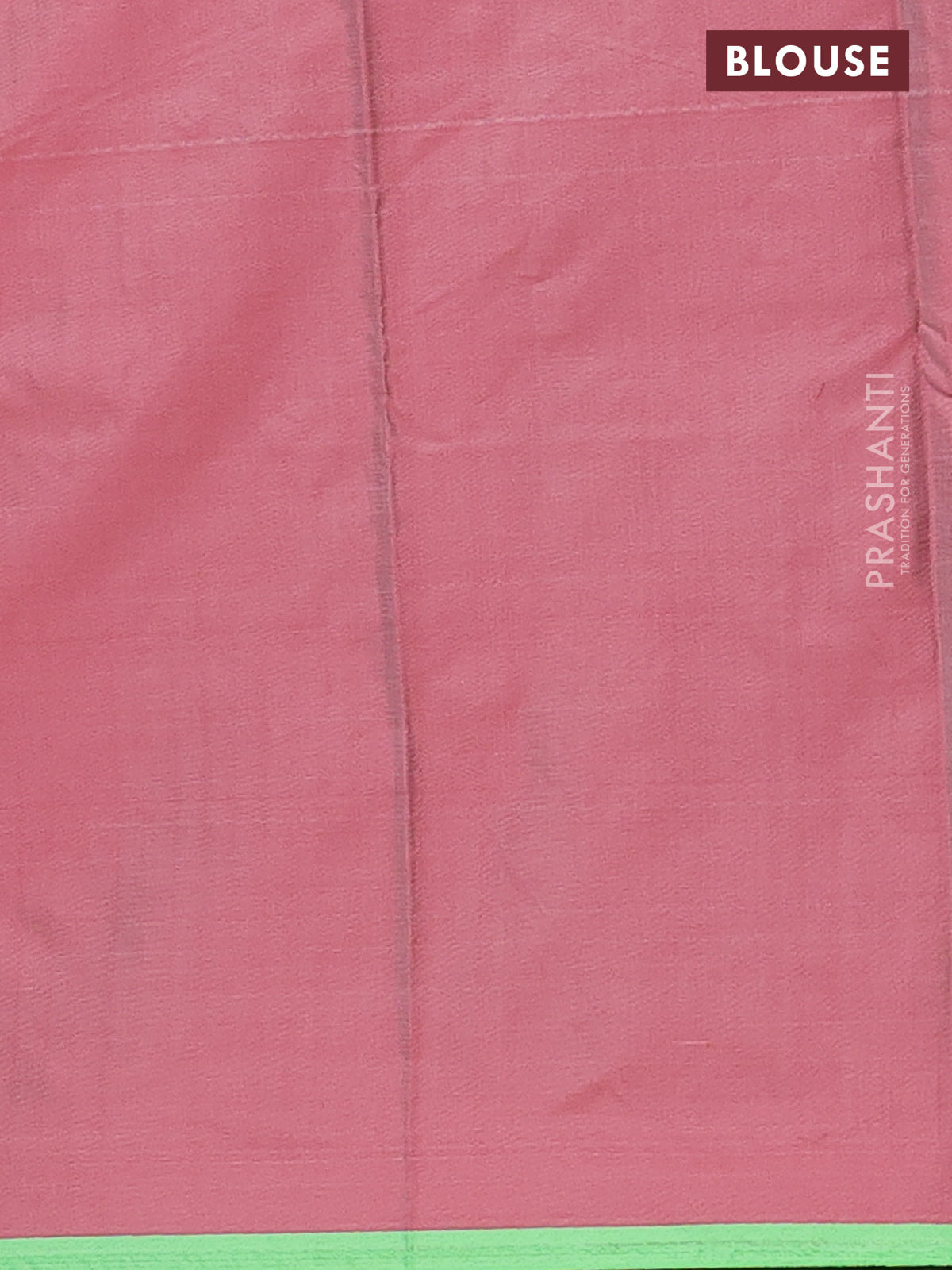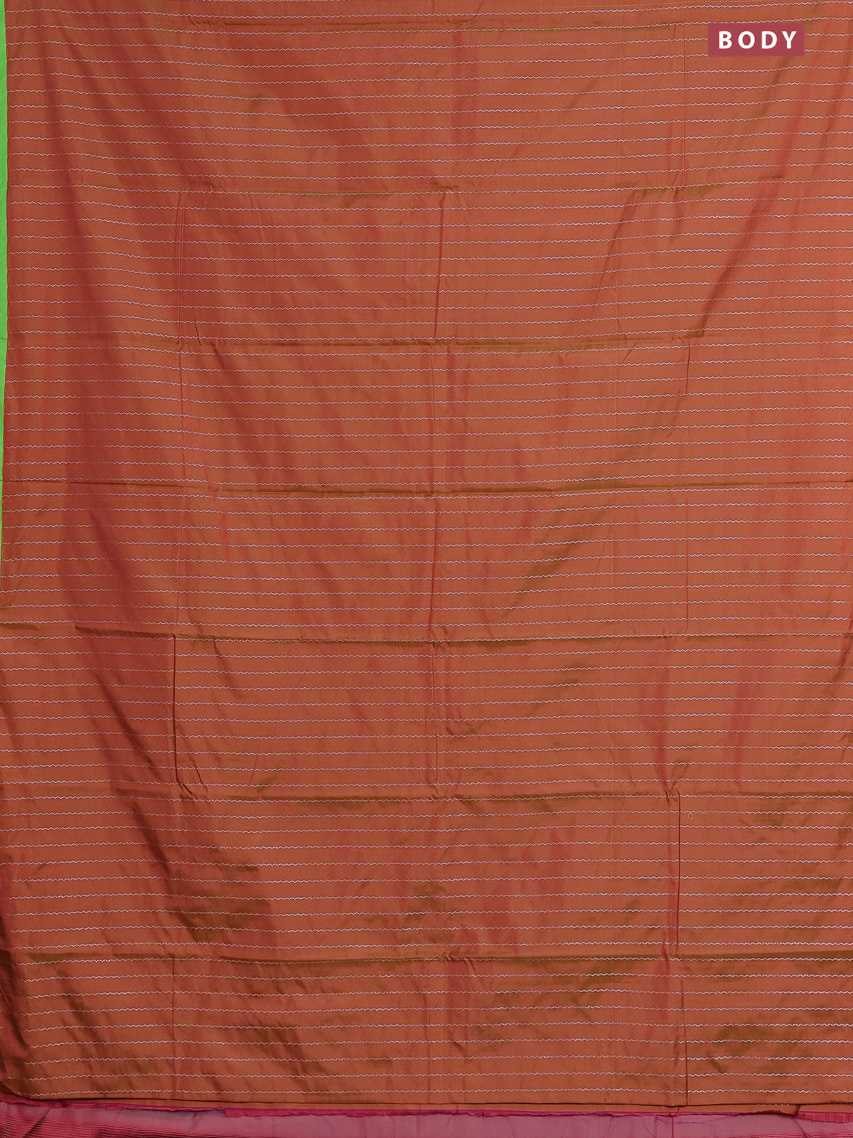 Arani semi silk saree rust shade and light green with allover silver zari weaves and piping border