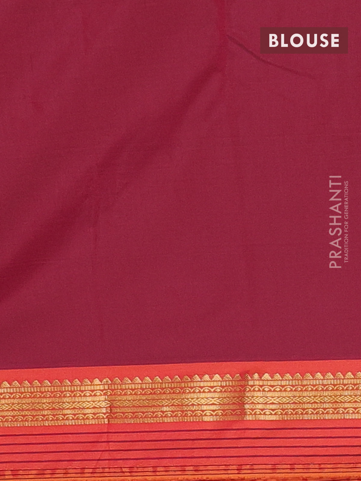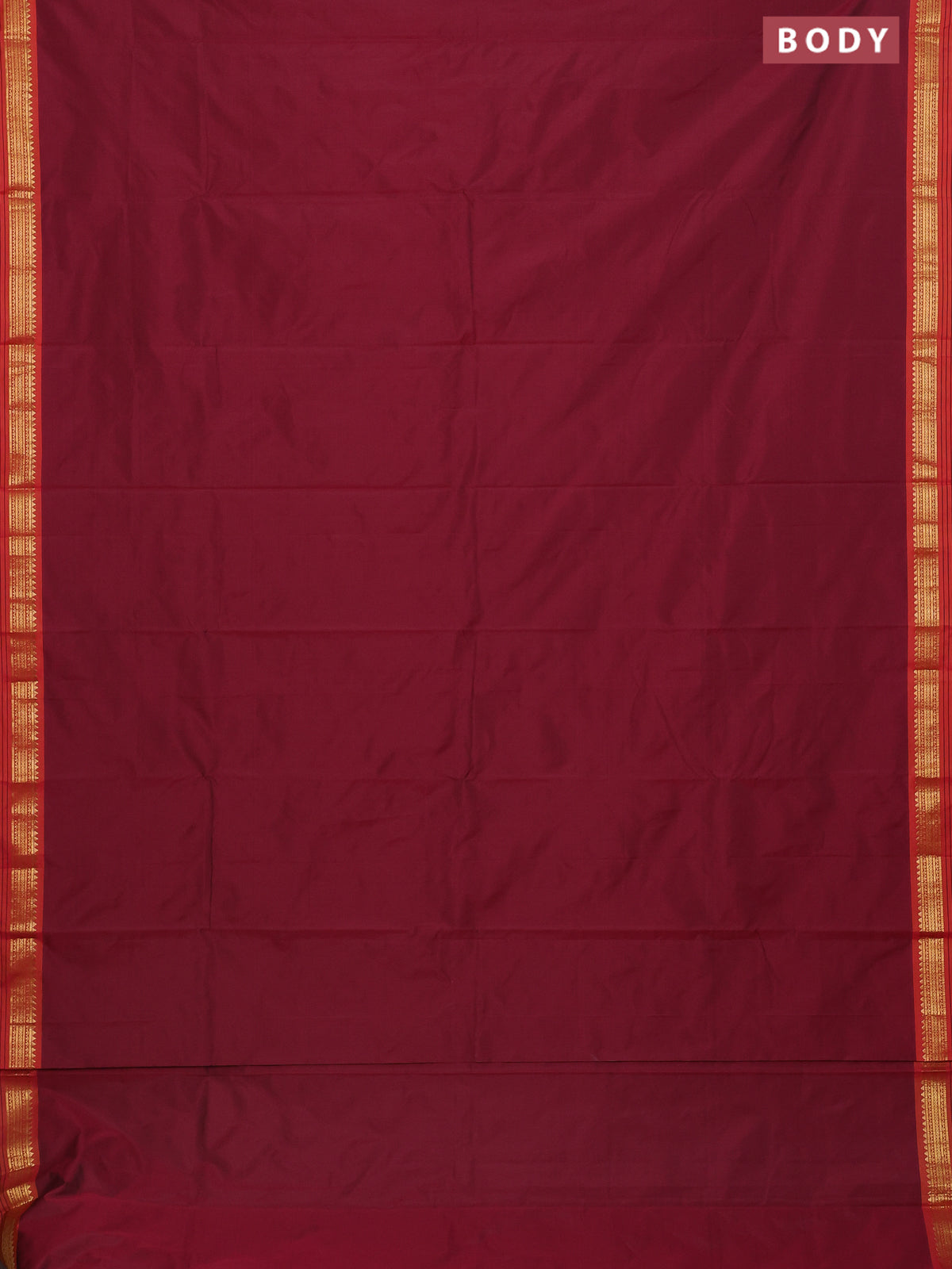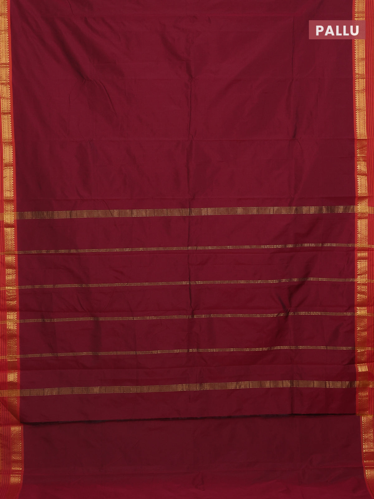 Arani semi silk saree wine shade and dark mustard with plain body and zari woven simple border