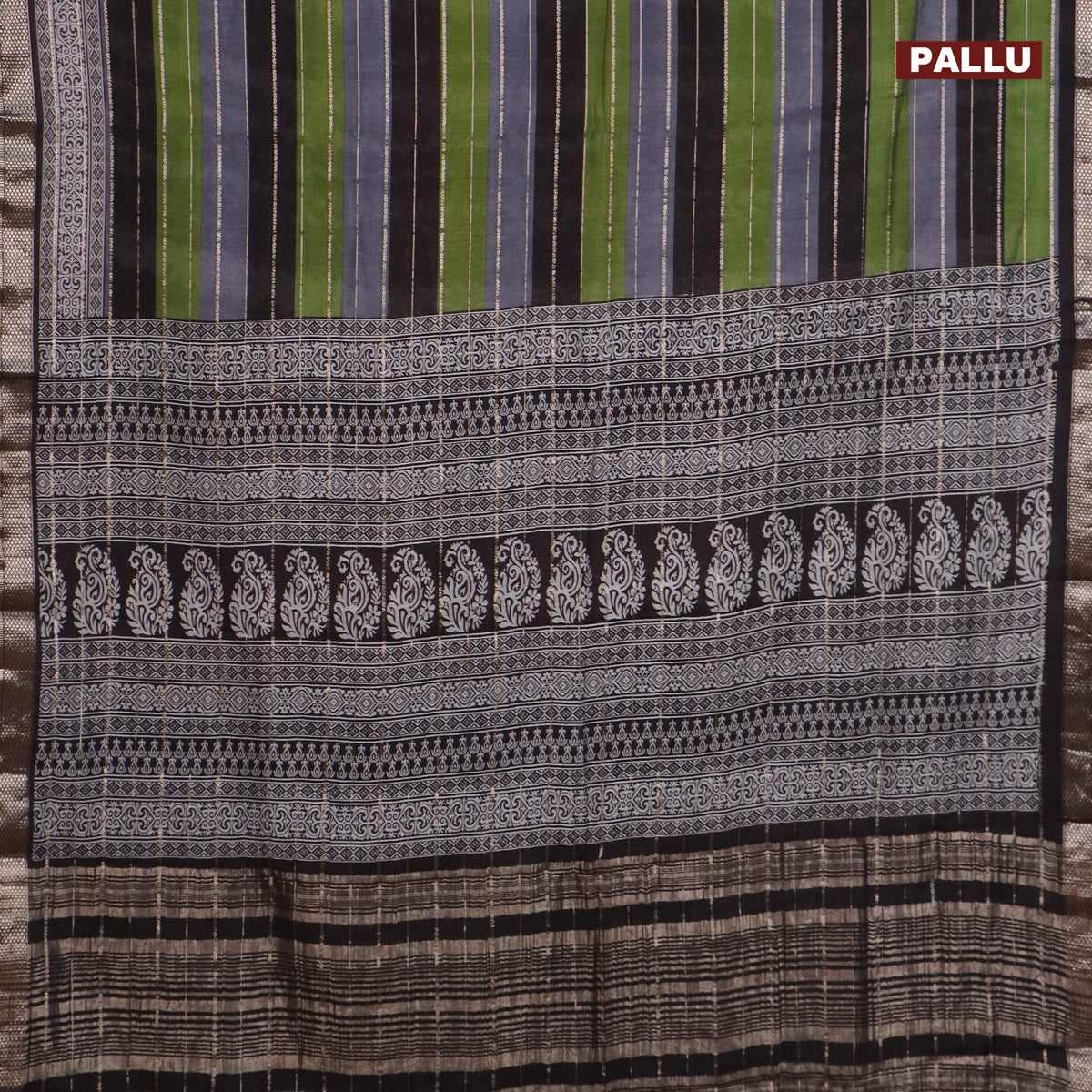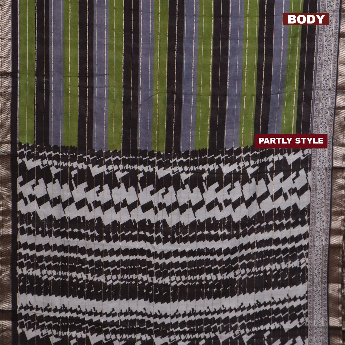 Assam partly silk saree multi colour and green black with digital prints & zari weaves and zari woven border
