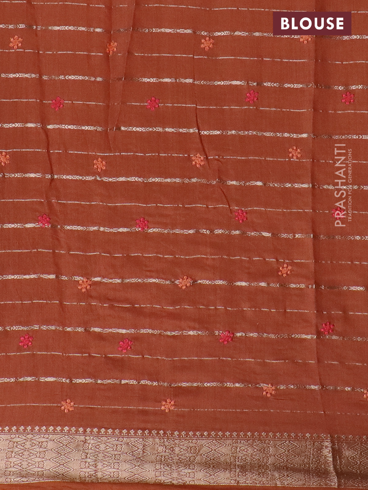 Assam silk saree rust shade with allover zari weaves & floral embroidery work buttas and zari woven border