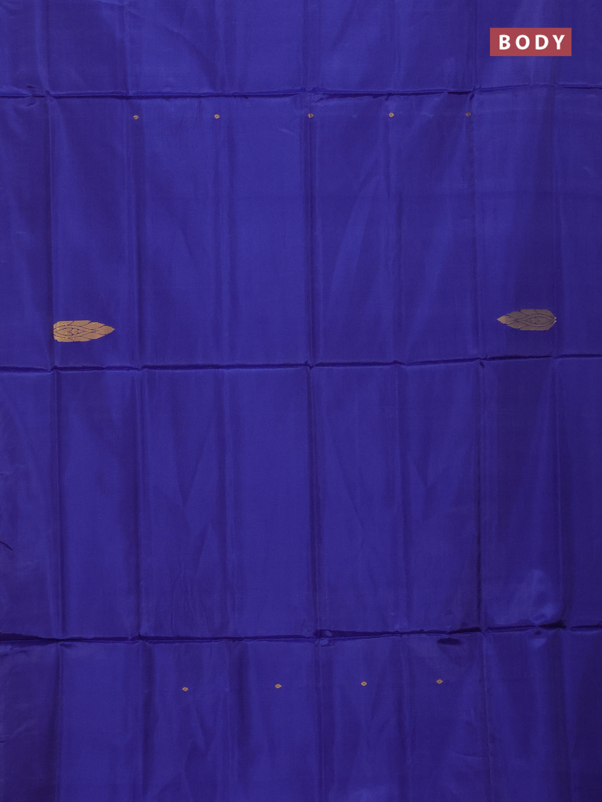Banana pith saree blue and pastel peach shade with thread woven buttas in borderless style