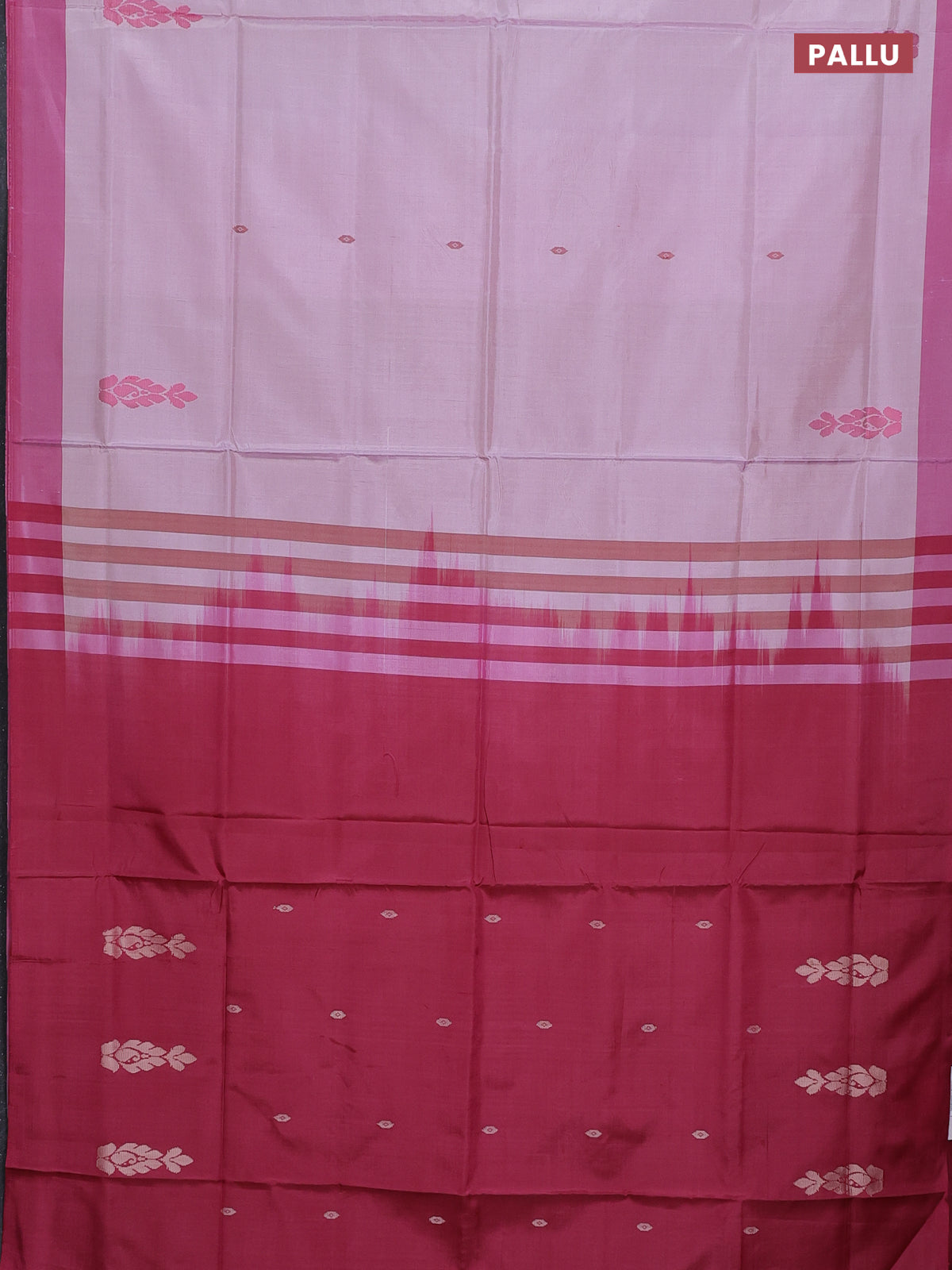 Banana pith saree pastel lavender and dark pink with thread woven buttas and contrast border