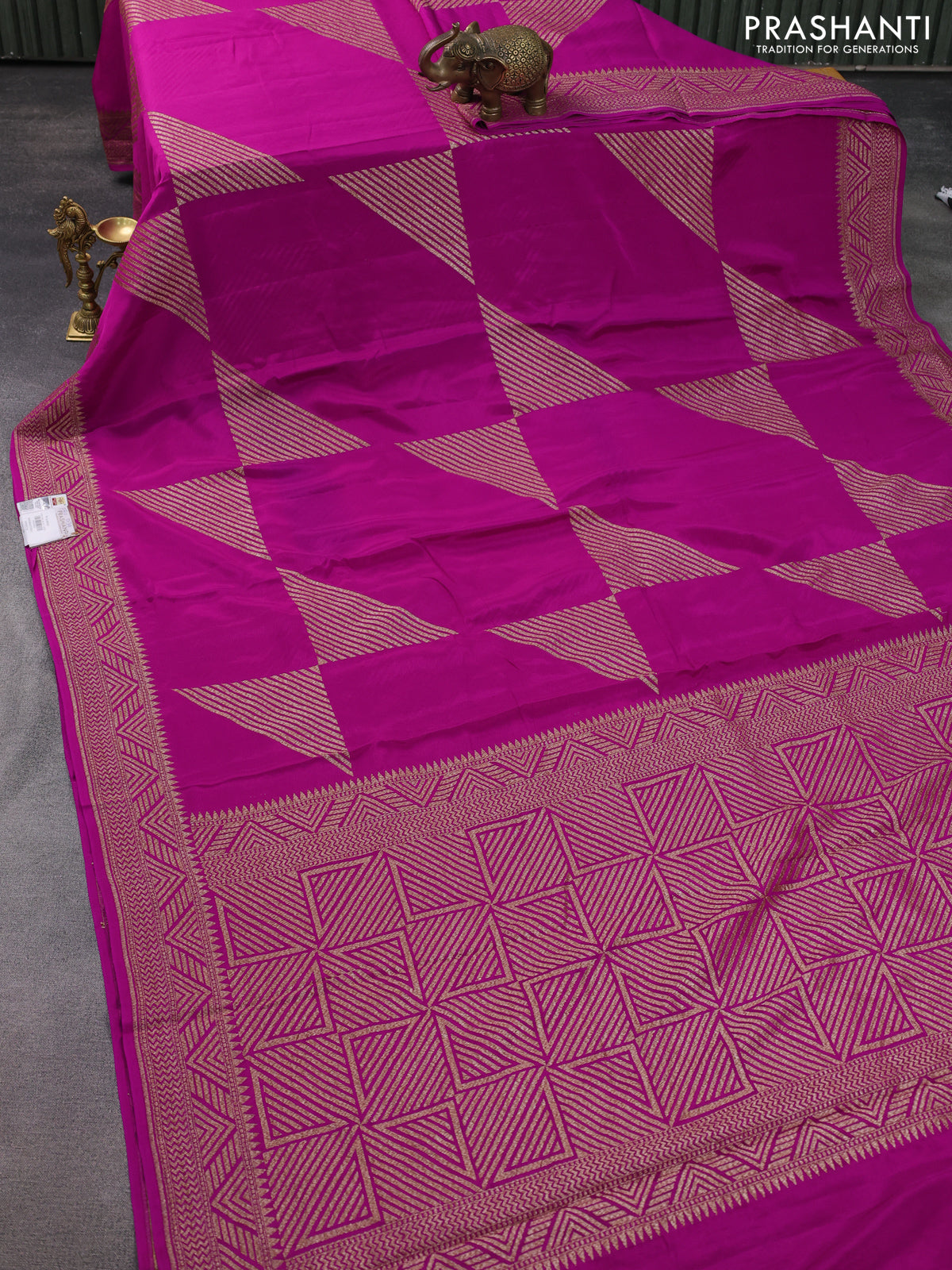 Banarasi crepe saree magenta pink with allover thread & zari geometric weaves and woven border