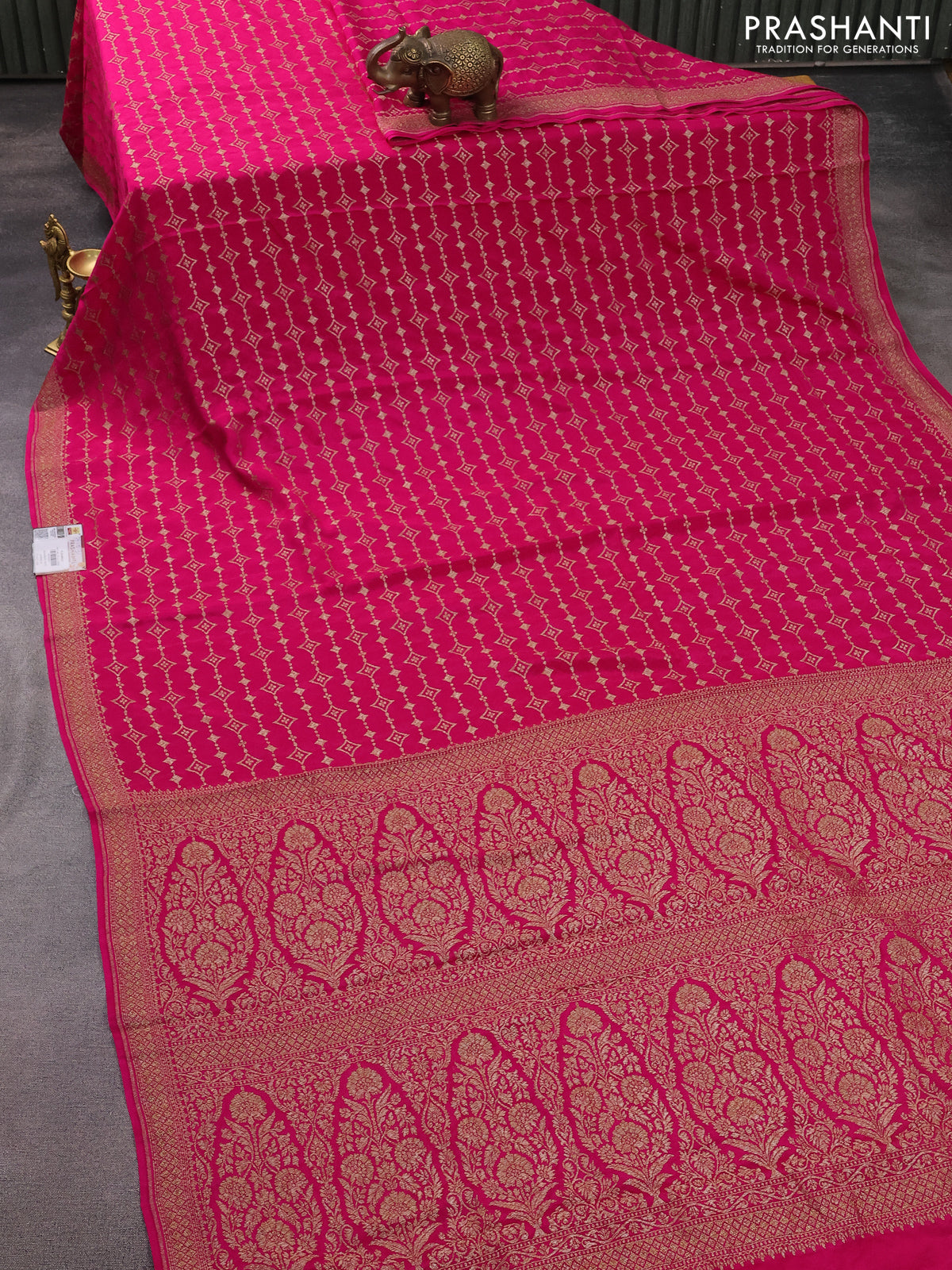 Banarasi crepe saree pink with allover thread & zari geometric weaves and woven border