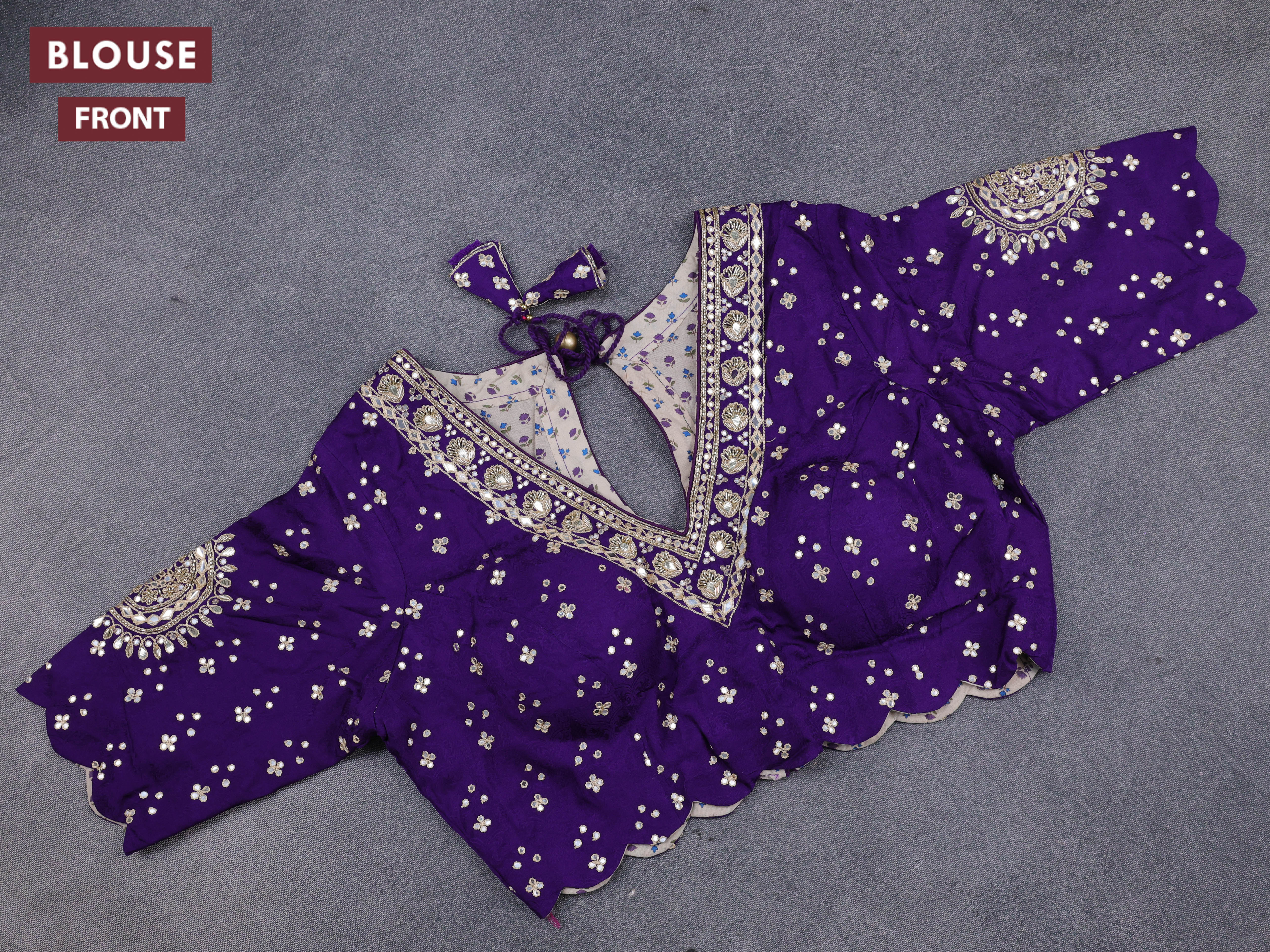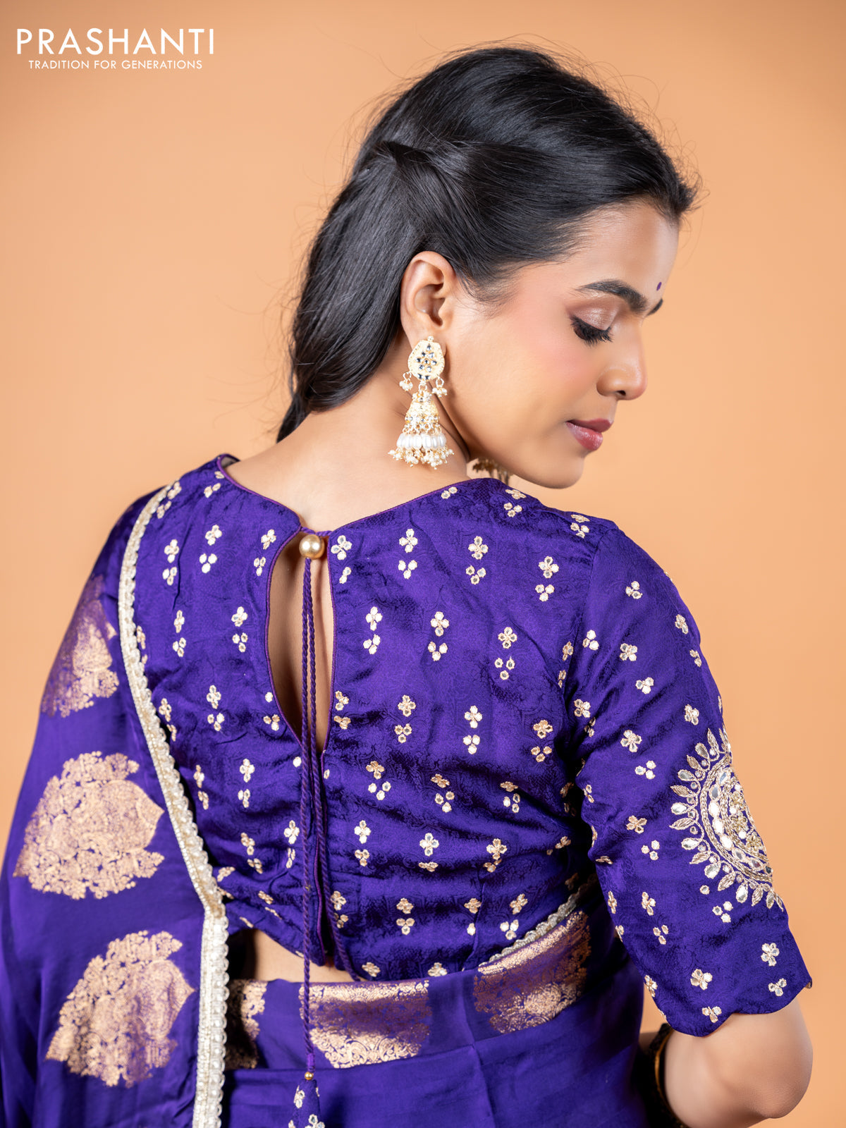 Banarasi crepe saree violet with stripes pattern and mirror work & banarasi style border