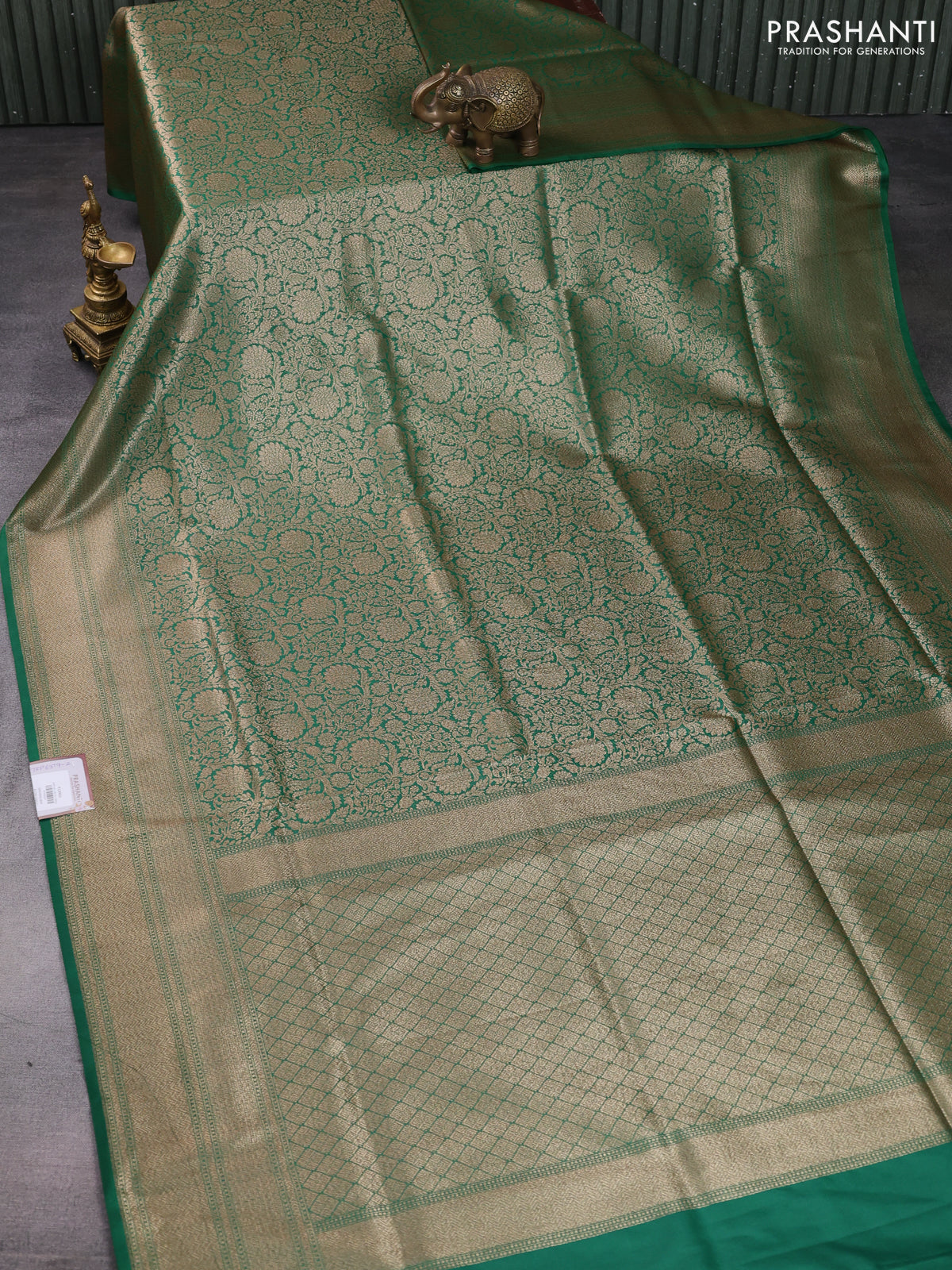 Banarasi semi katan saree green with allover thread & zari woven brocade weaves and woven border