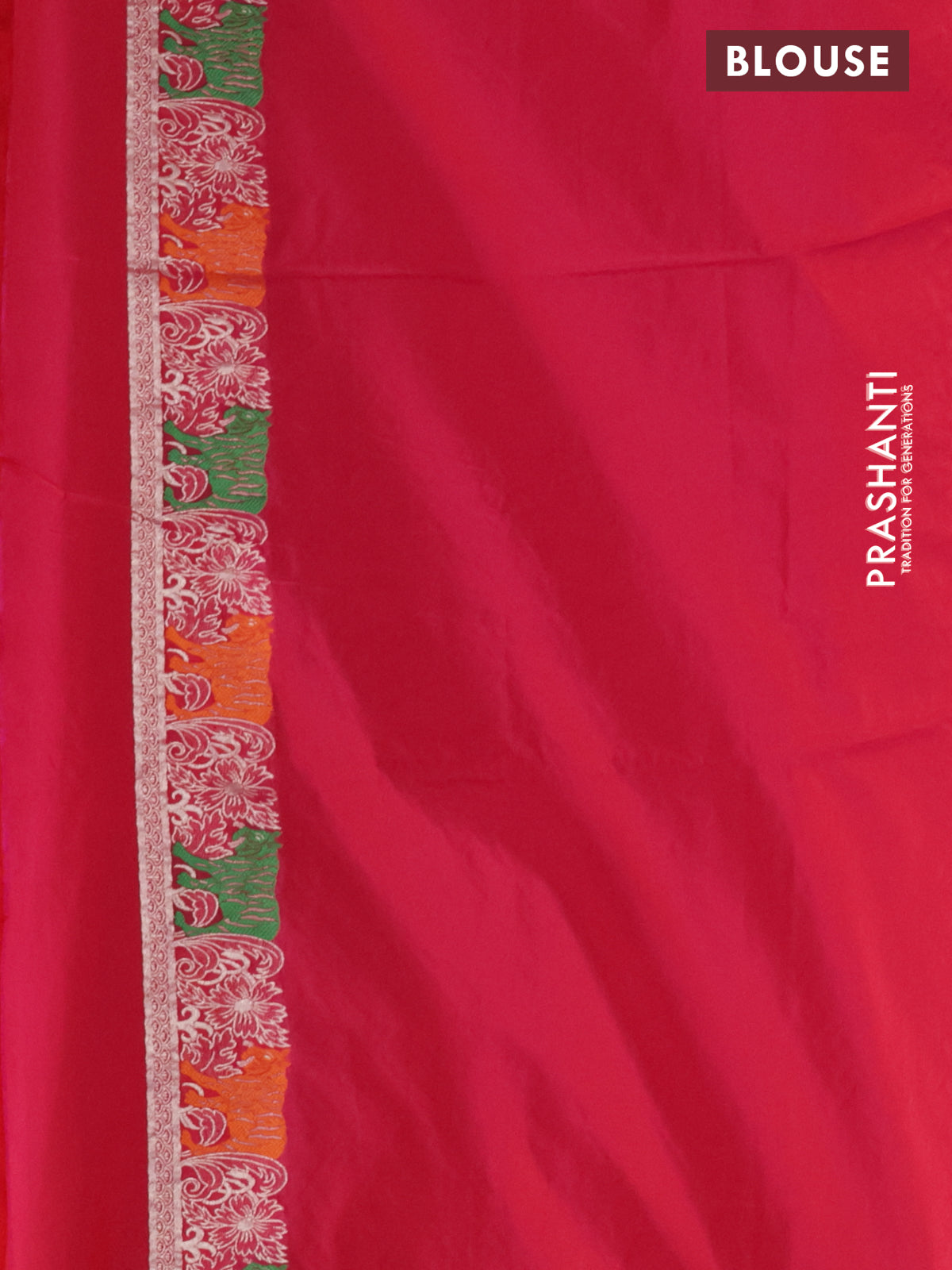 Banarasi semi katan silk saree dark pink with allover zari weaves and rich zari woven border