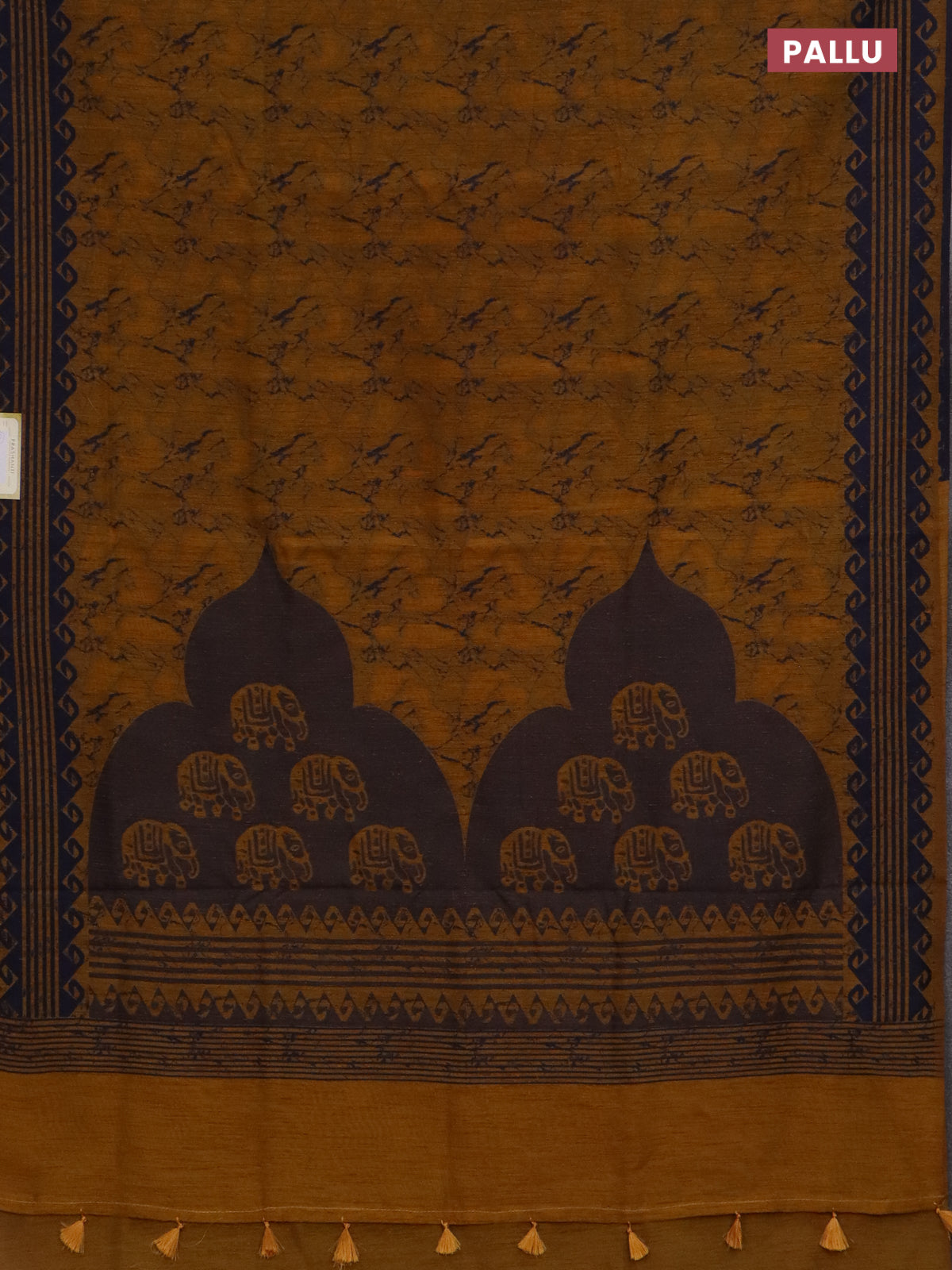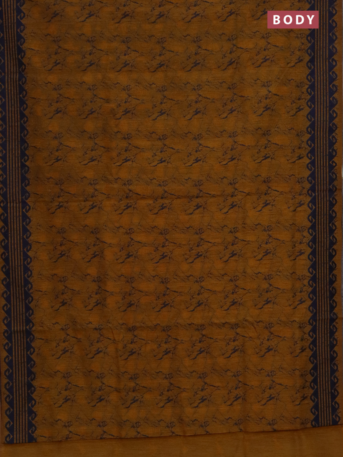 Banarasi semi matka saree mustard yellow and navy blue with allover thread weaves and thread woven border