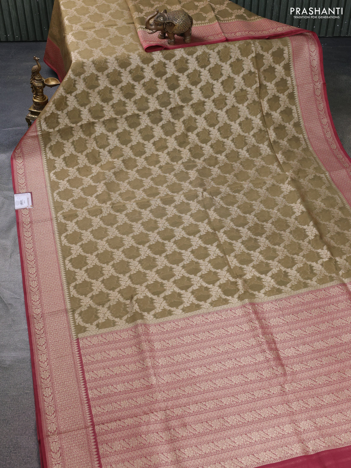 Banarasi silk cotton saree chikku shade and pastel maroon with allover thread & zari weaves and woven border