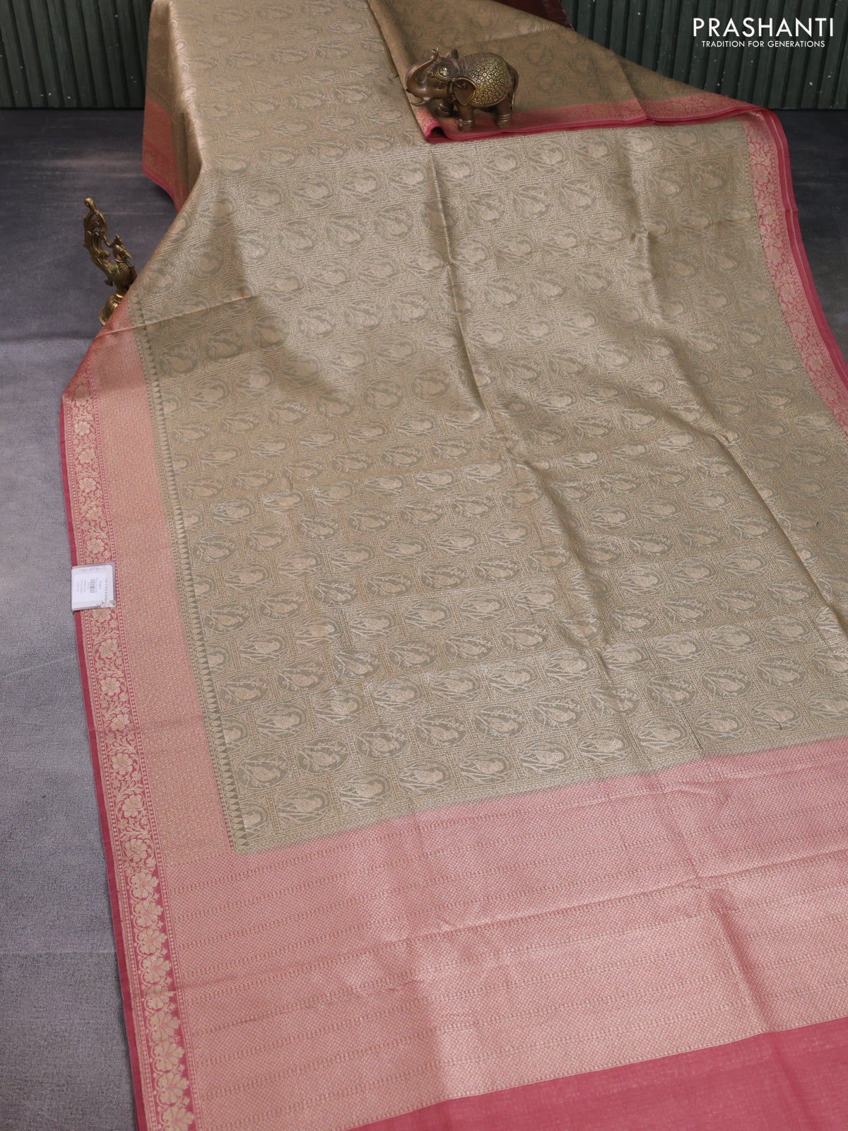 Banarasi silk cotton saree grey and pink shade with allover thread & zari woven brocade weaves and woven border