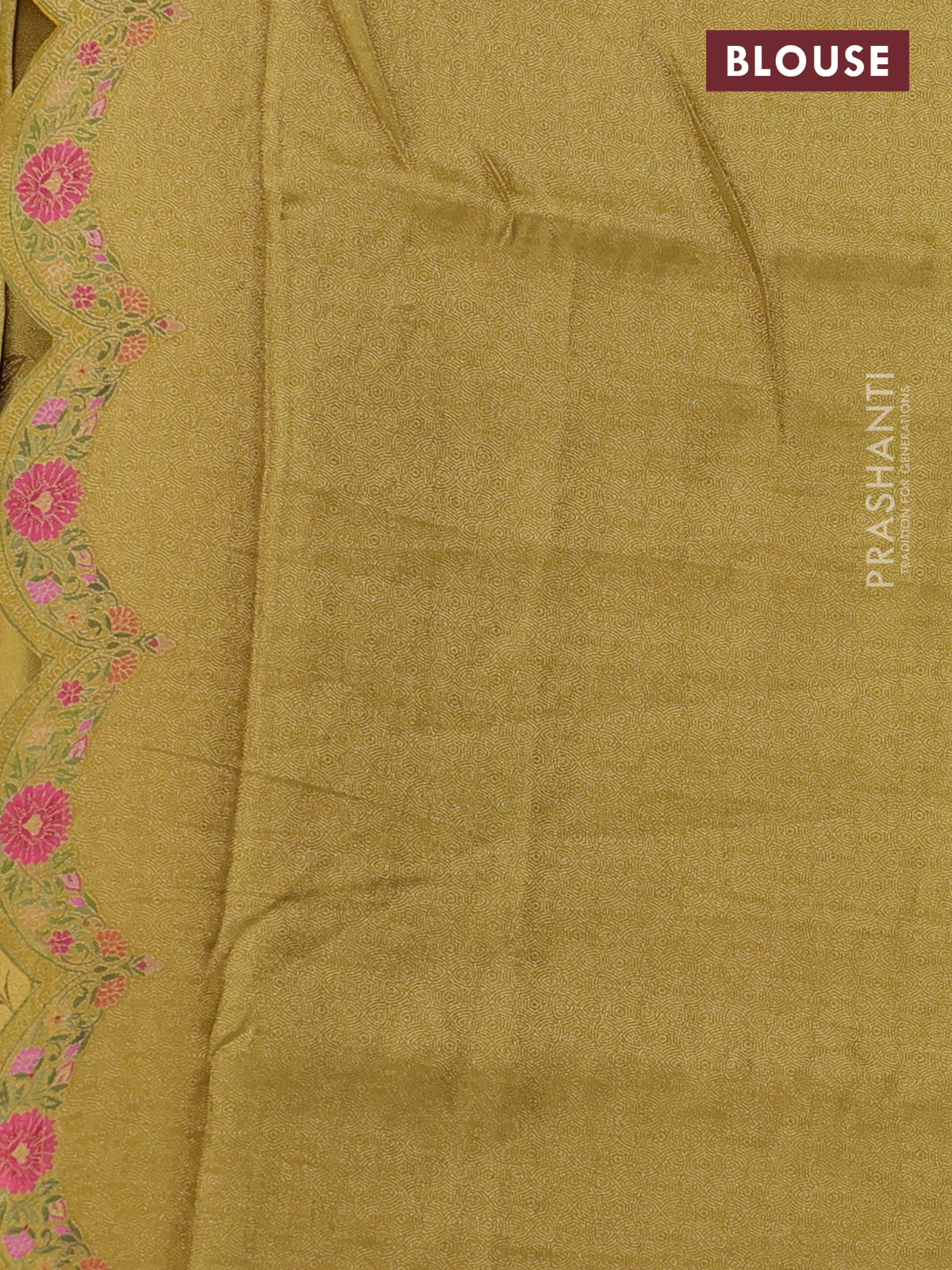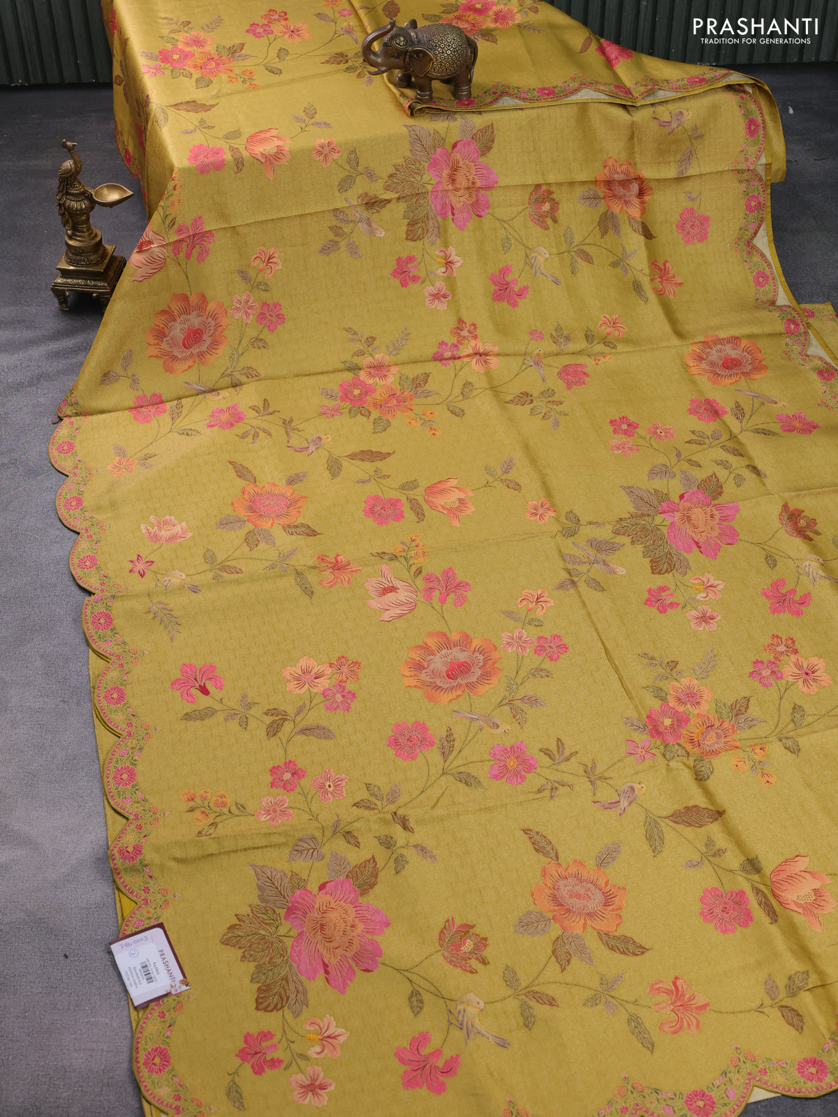 Banarasi silk saree yellow with allover floral prints and scallop design border