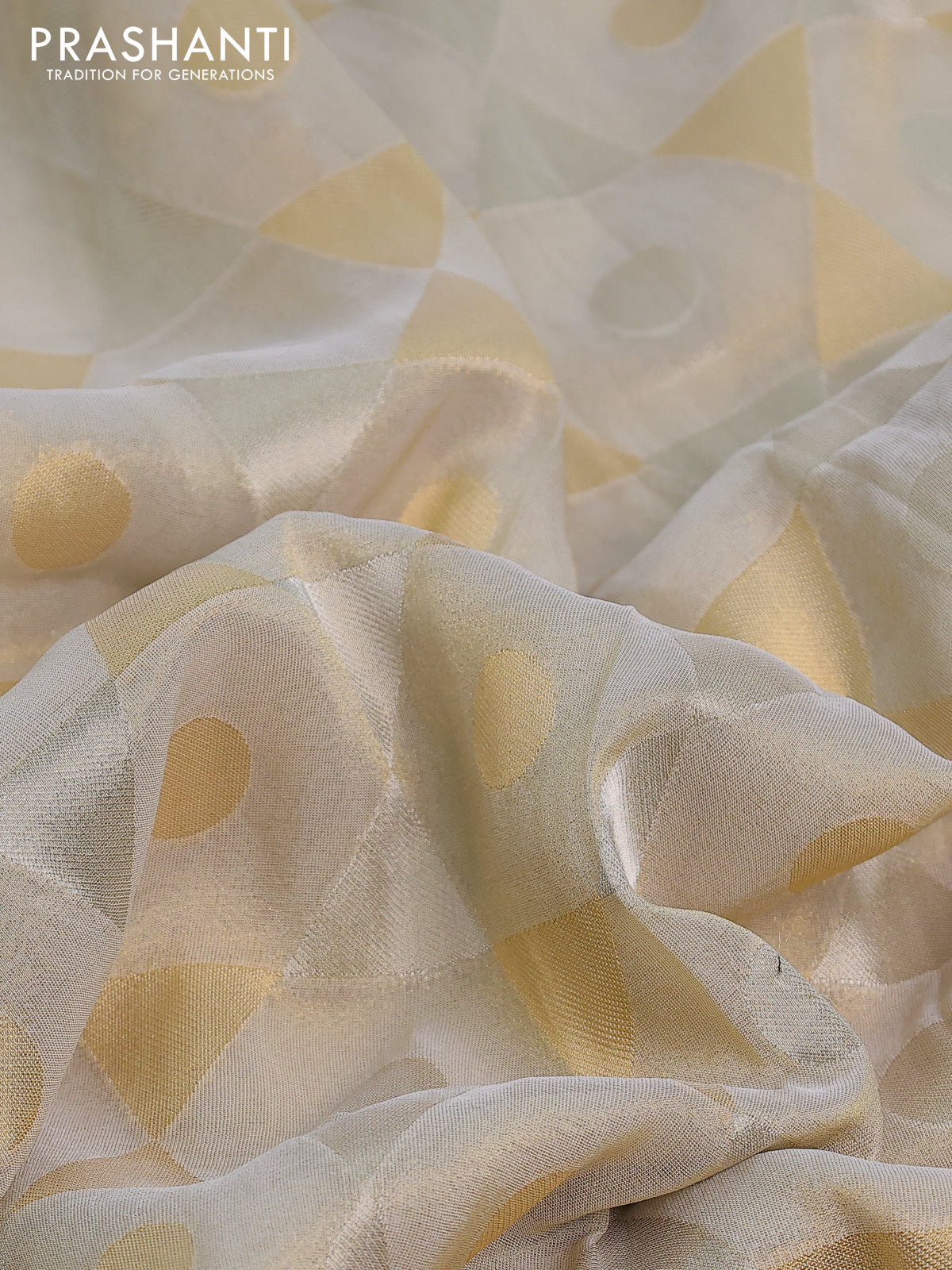 Banarasi tissue saree beige and violet with allover zari woven geometric wevaes and lace work border