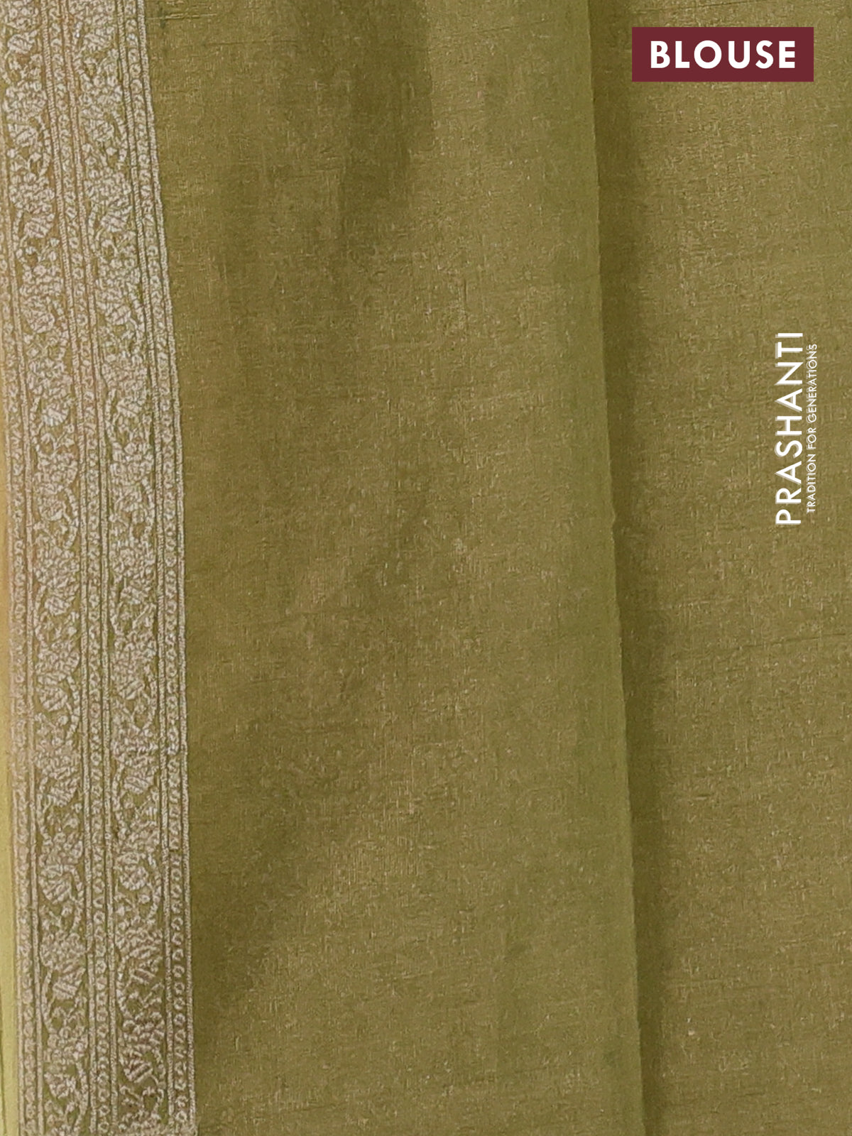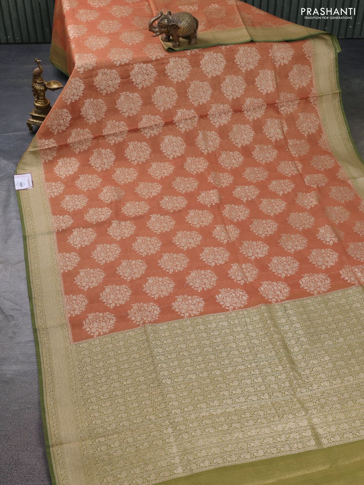 Banarasi tissue silk cotton saree rust shade and sap green with allover thread & zari woven butta weaves and woven border