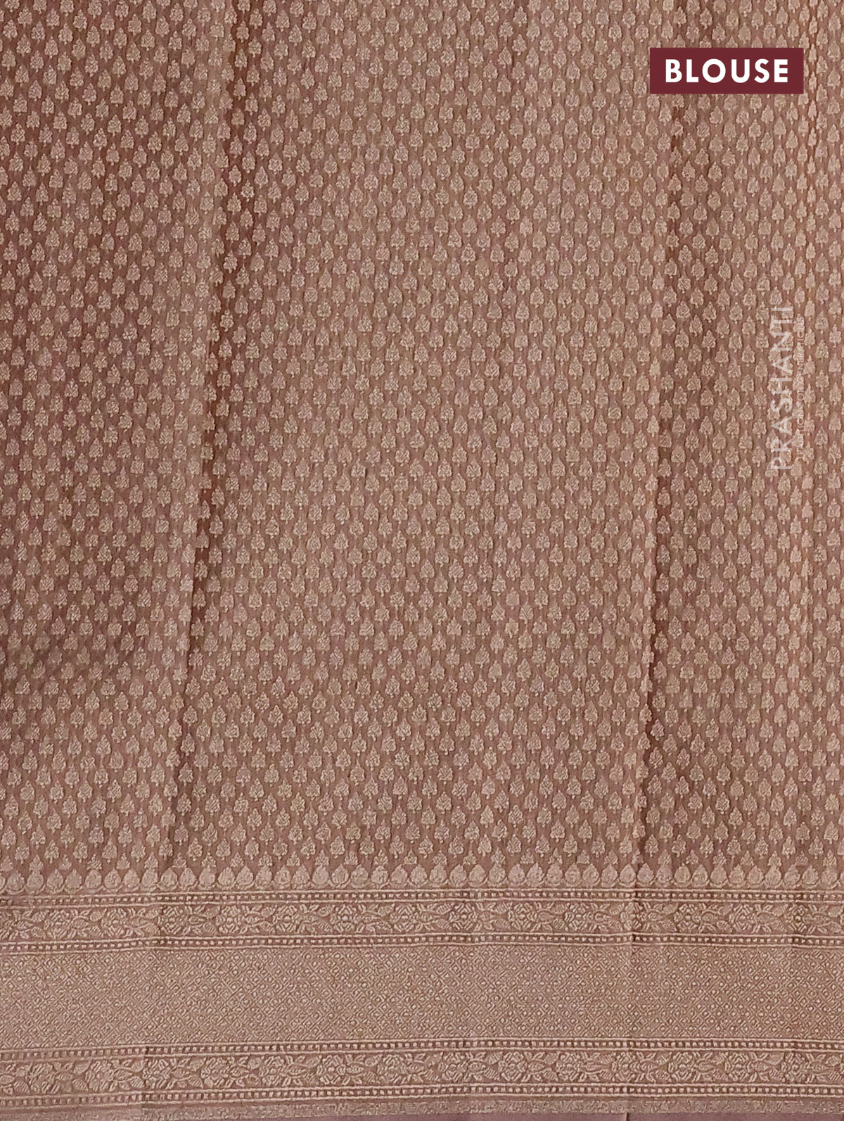Banarasi tissue silk saree dark sandal with allover silver & gold zari weaves and zari woven border