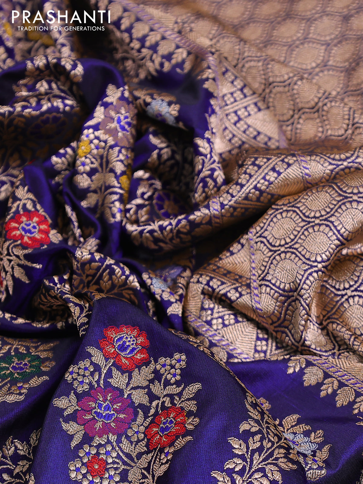 Banarasi uppada silk saree navy blue with allover zari woven floral brocade weaves and zari woven border