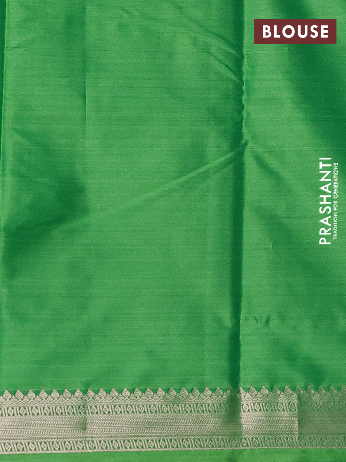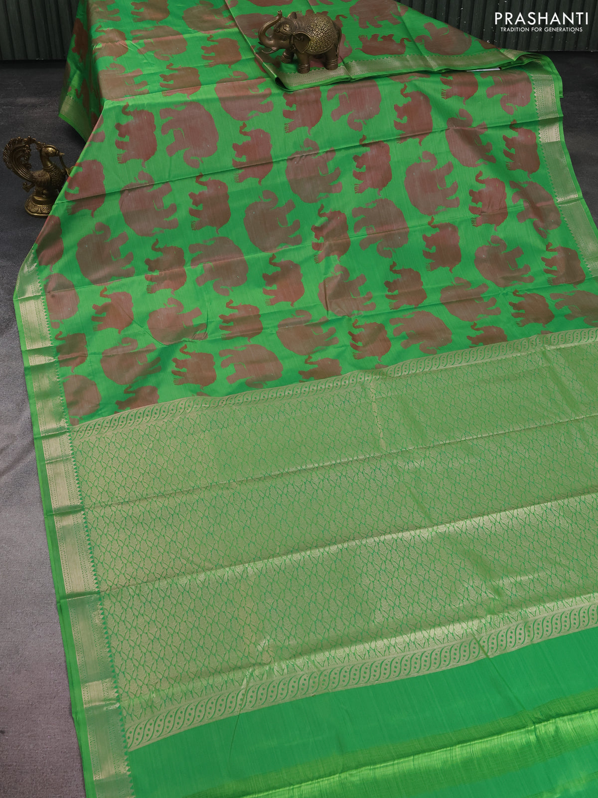 Bangalori semi silk saree green with allover elephant butta ikat weaves and zari woven border