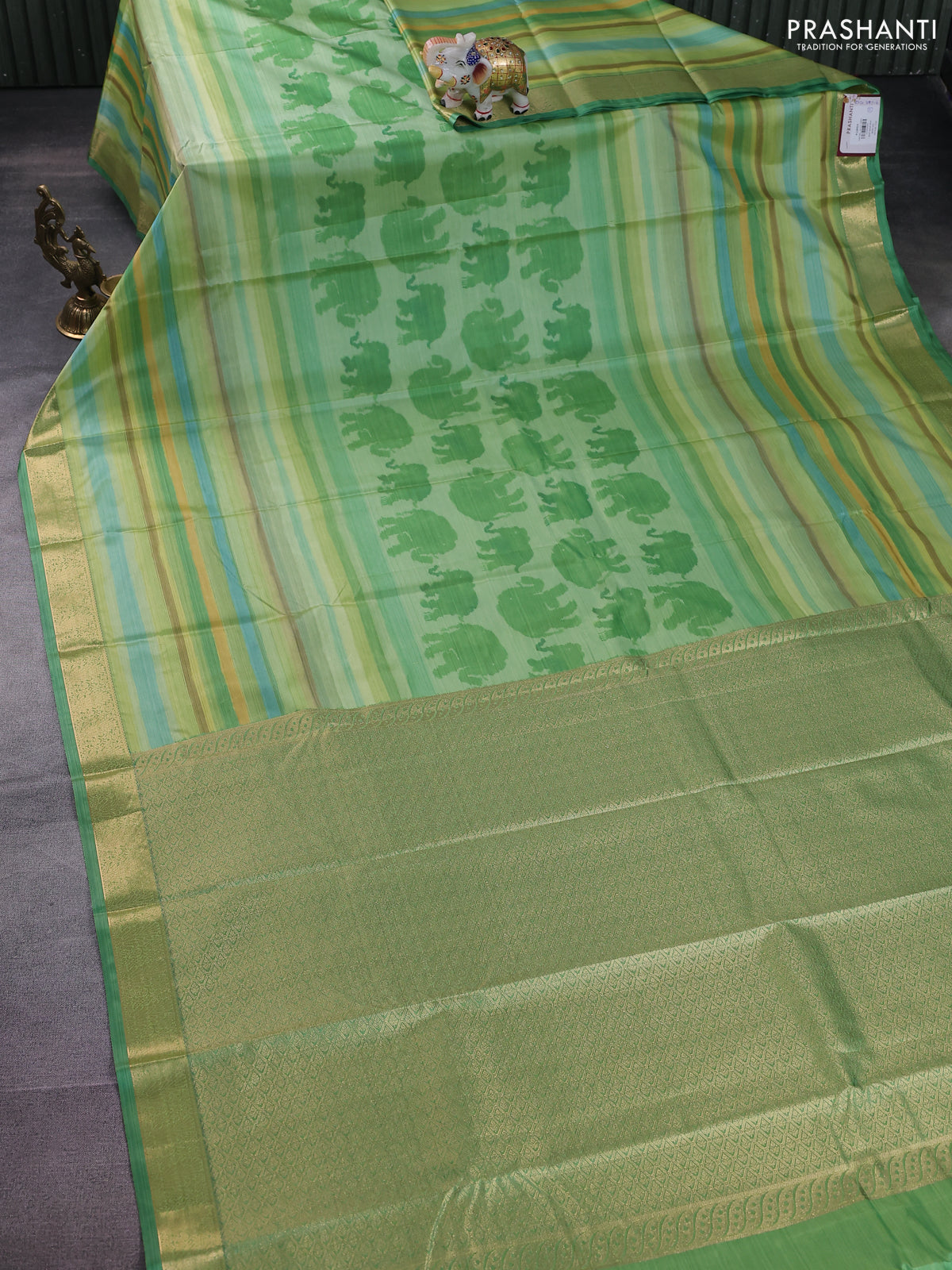 Bangalori semi silk saree light gree and green with allover elephant butta ikat weaves and zari woven border