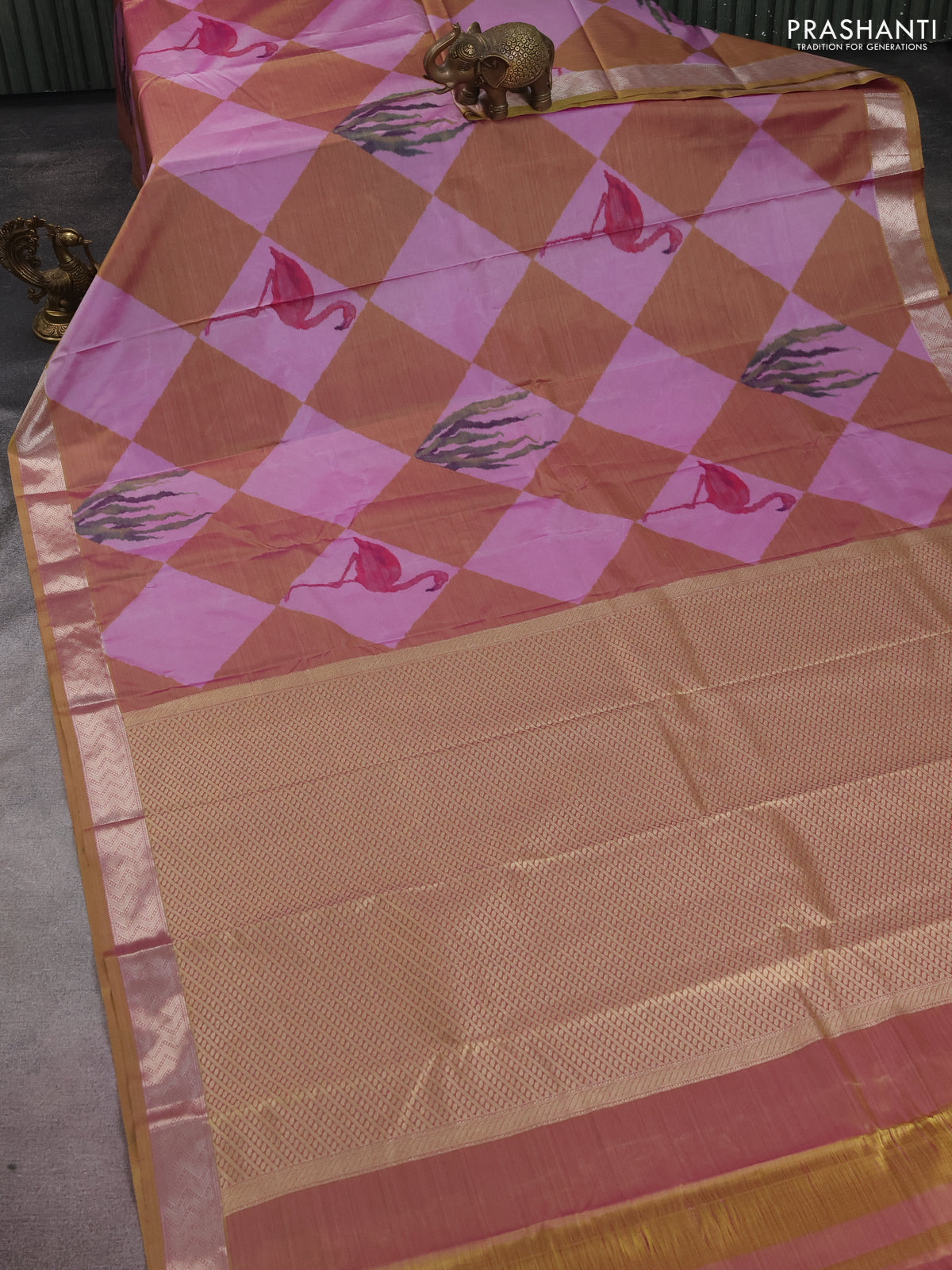 Bangalori semi silk saree mild purple and mehendi green with allover ikat weaves and zari woven border