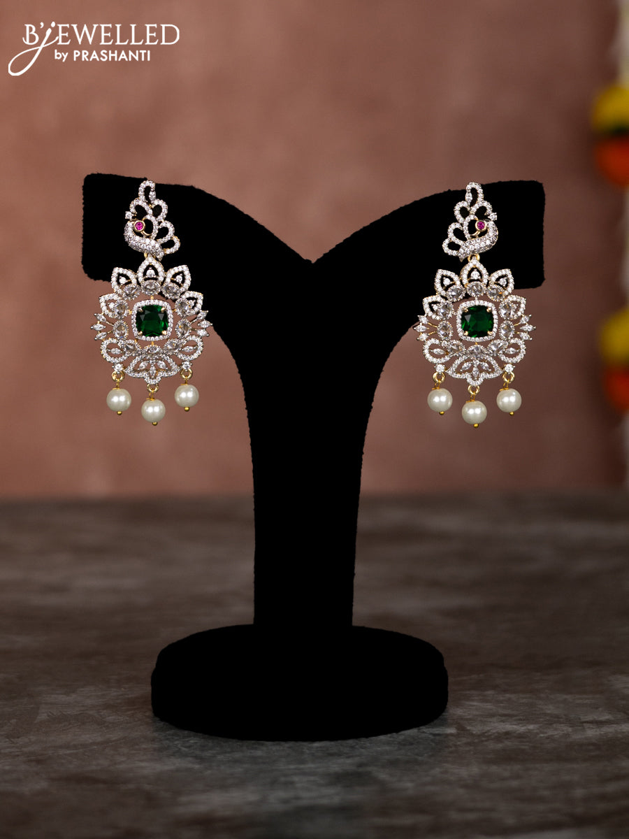 Beaded green necklace with emerald & cz stones and pearl hangings in zircon finish