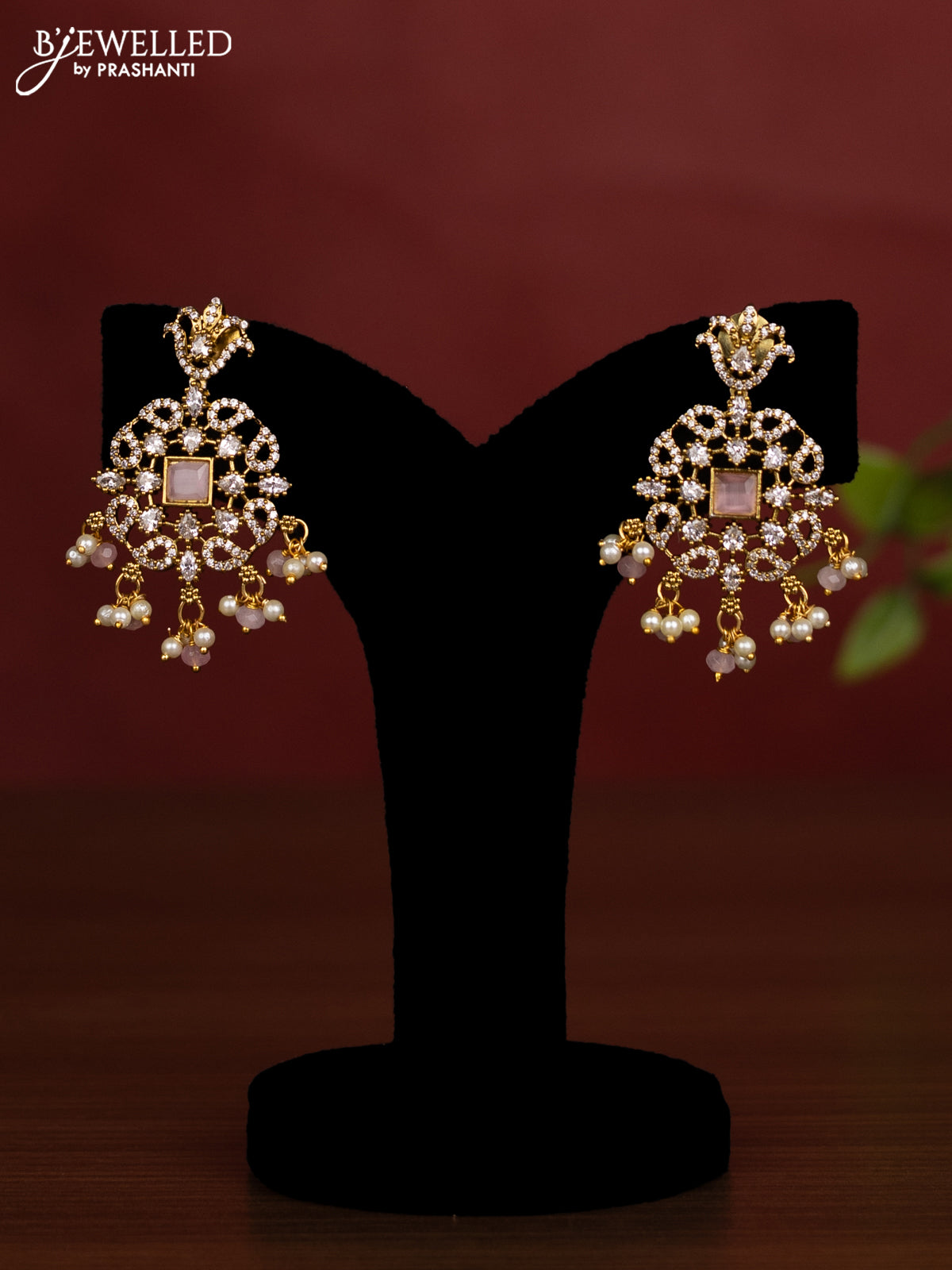 Beaded triple layer baby pink necklace with cz stones and pearl & beads hanging in victorian finish