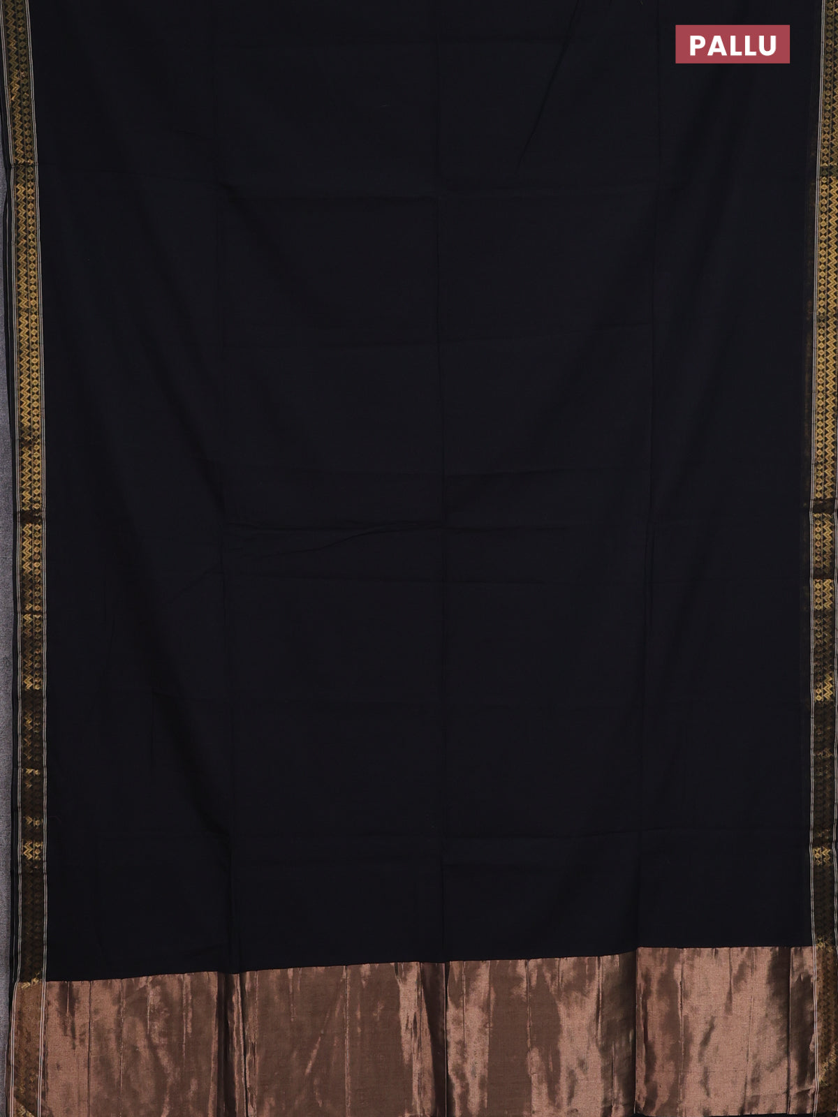 Bengal soft cotton saree black and cs blue with plain body and zari woven border