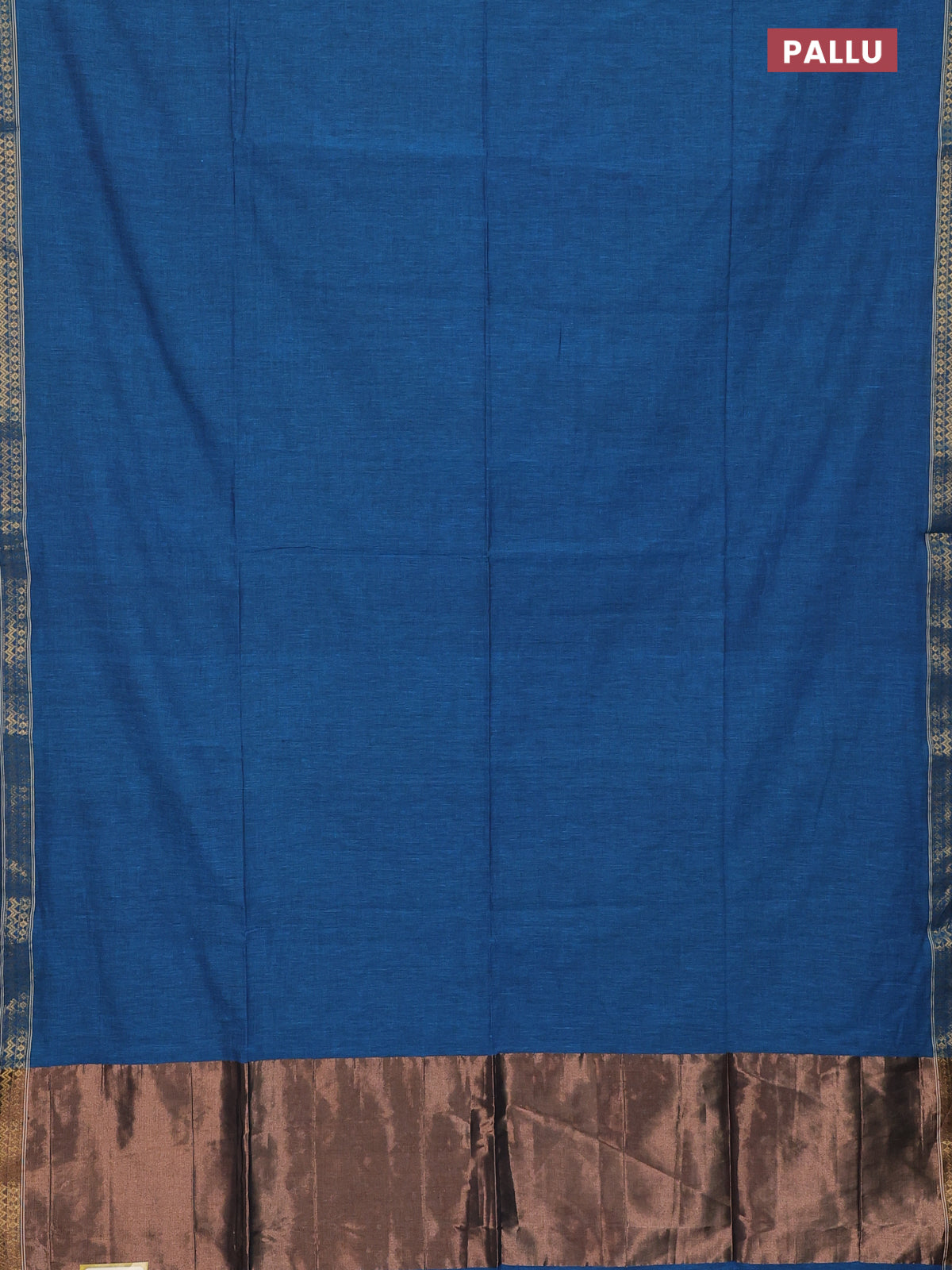 Bengal soft cotton saree cs blue with plain body and zari woven border