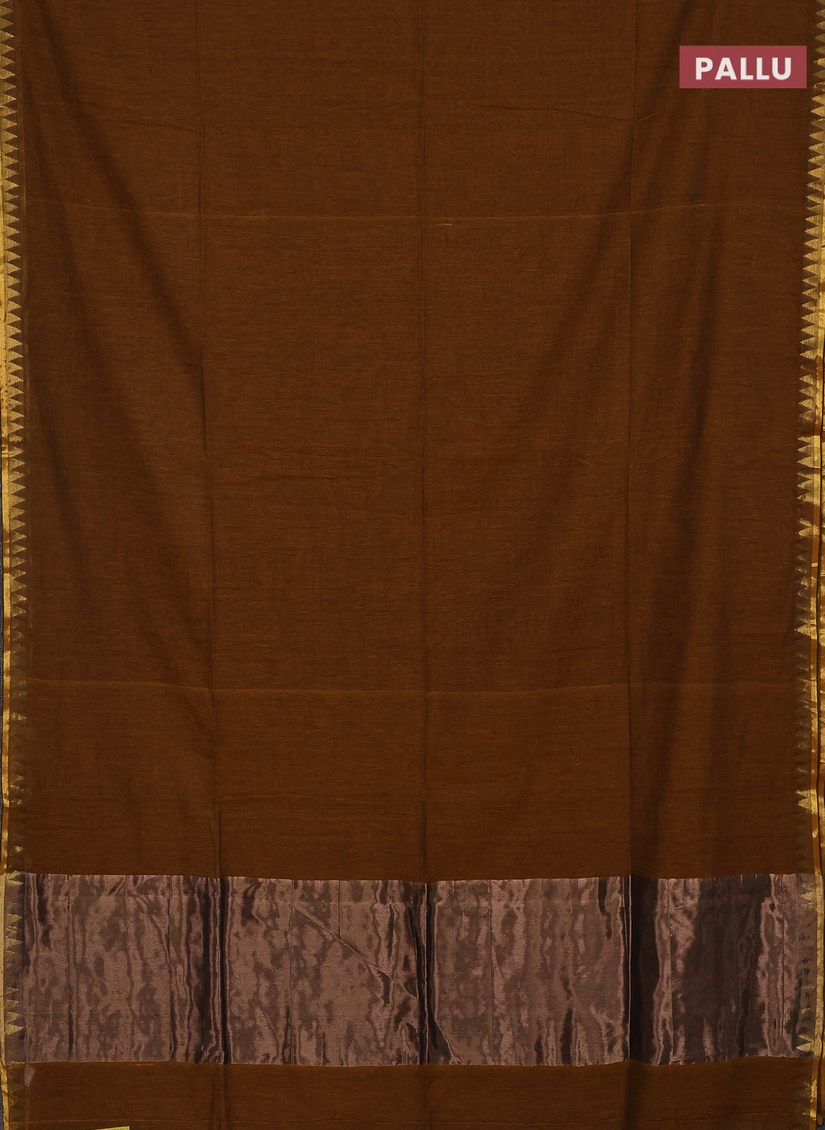 Bengal soft cotton saree dark mustard and blue with plain body and zari woven border