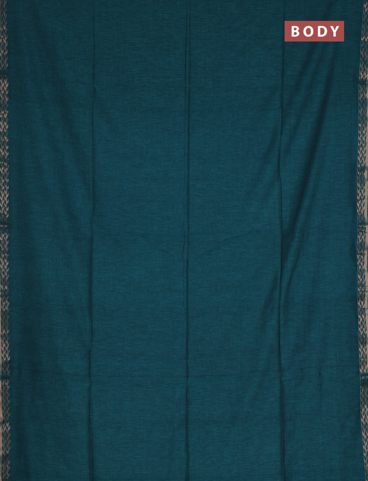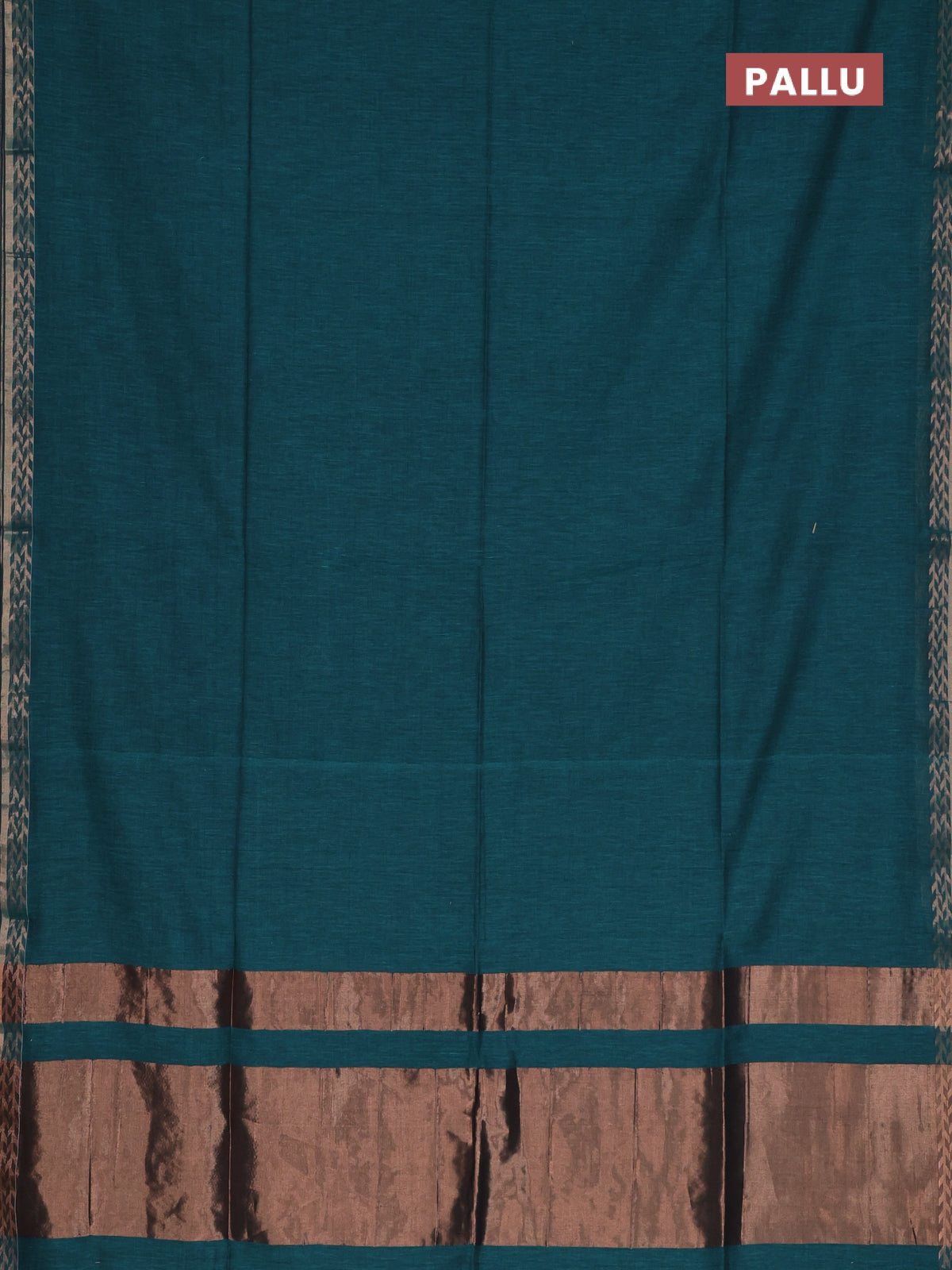 Bengal soft cotton saree teal green and light green with plain body and zari woven border