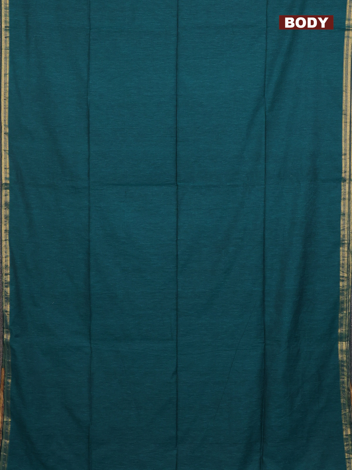 Bengal soft cotton saree teal green and violet with plain body and zari woven border