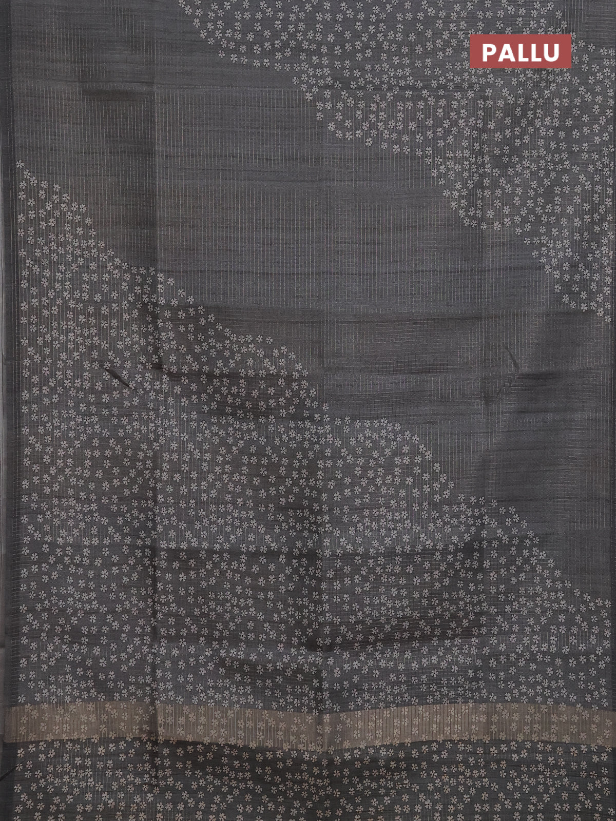 Chappa saree grey with allover small zari checked pattern and floral digital printed pallu