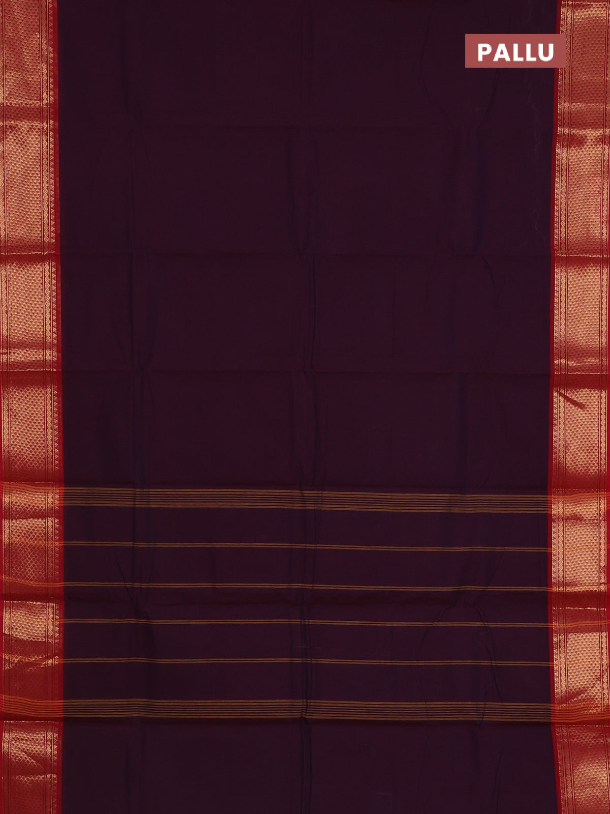 Chettinad cotton saree deep jamun shade and red with thread woven buttas and zari woven border