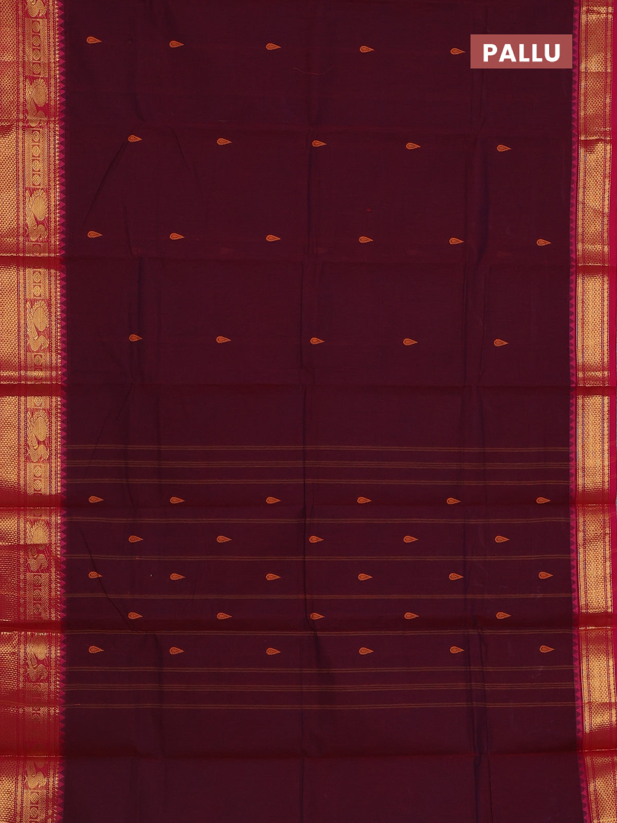 Chettinad cotton saree maroon and magenta pink with thread woven buttas and zari woven border