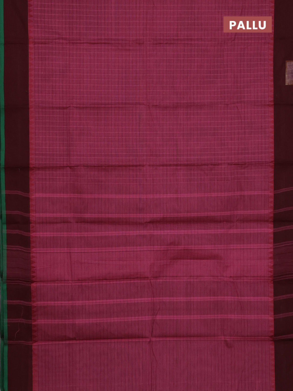Chettinad cotton saree mauve pink and deep maroon with allover checked pattern and simple border