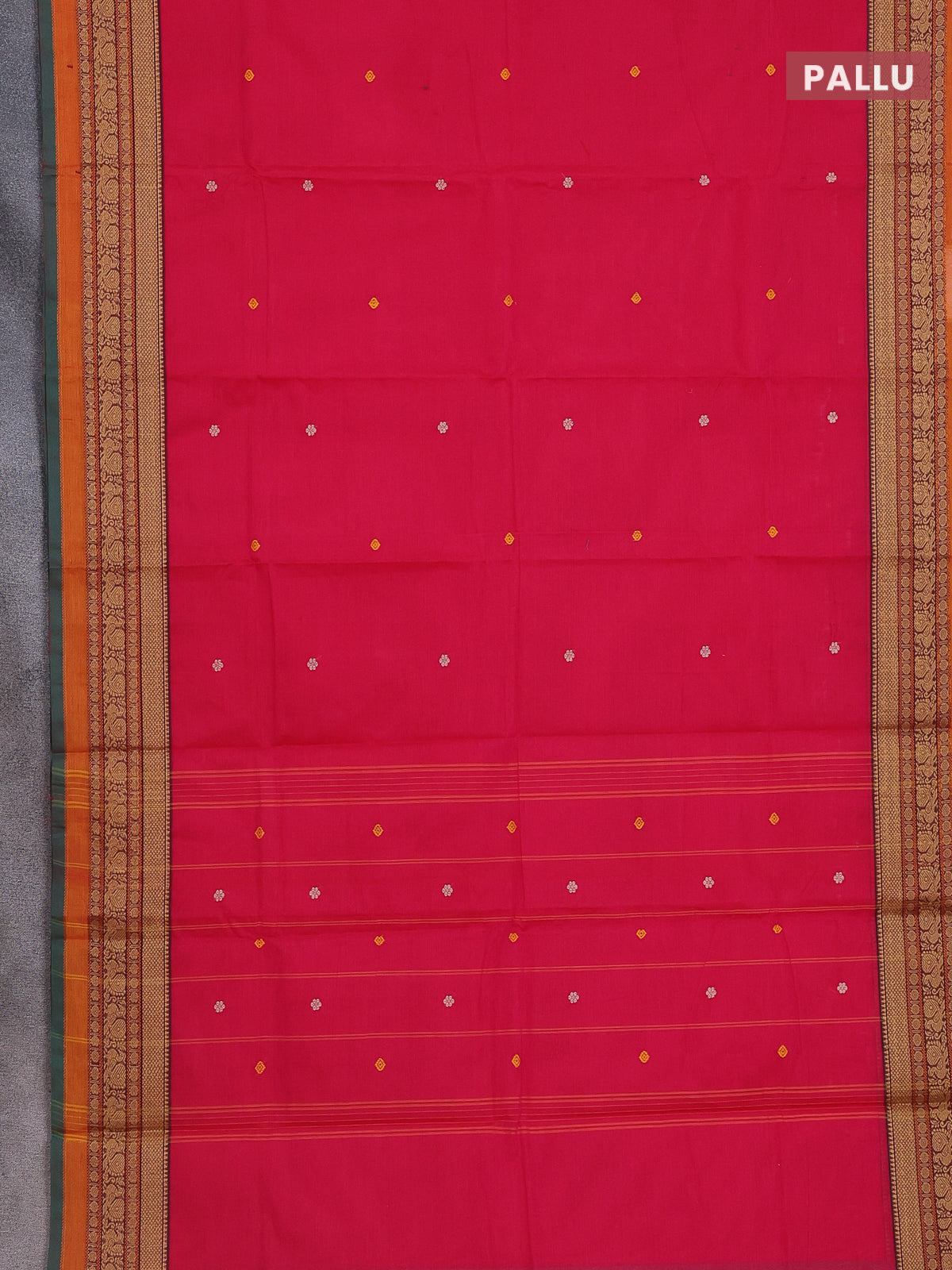 Chettinad cotton saree pink and green with thread woven buttas and thread woven border