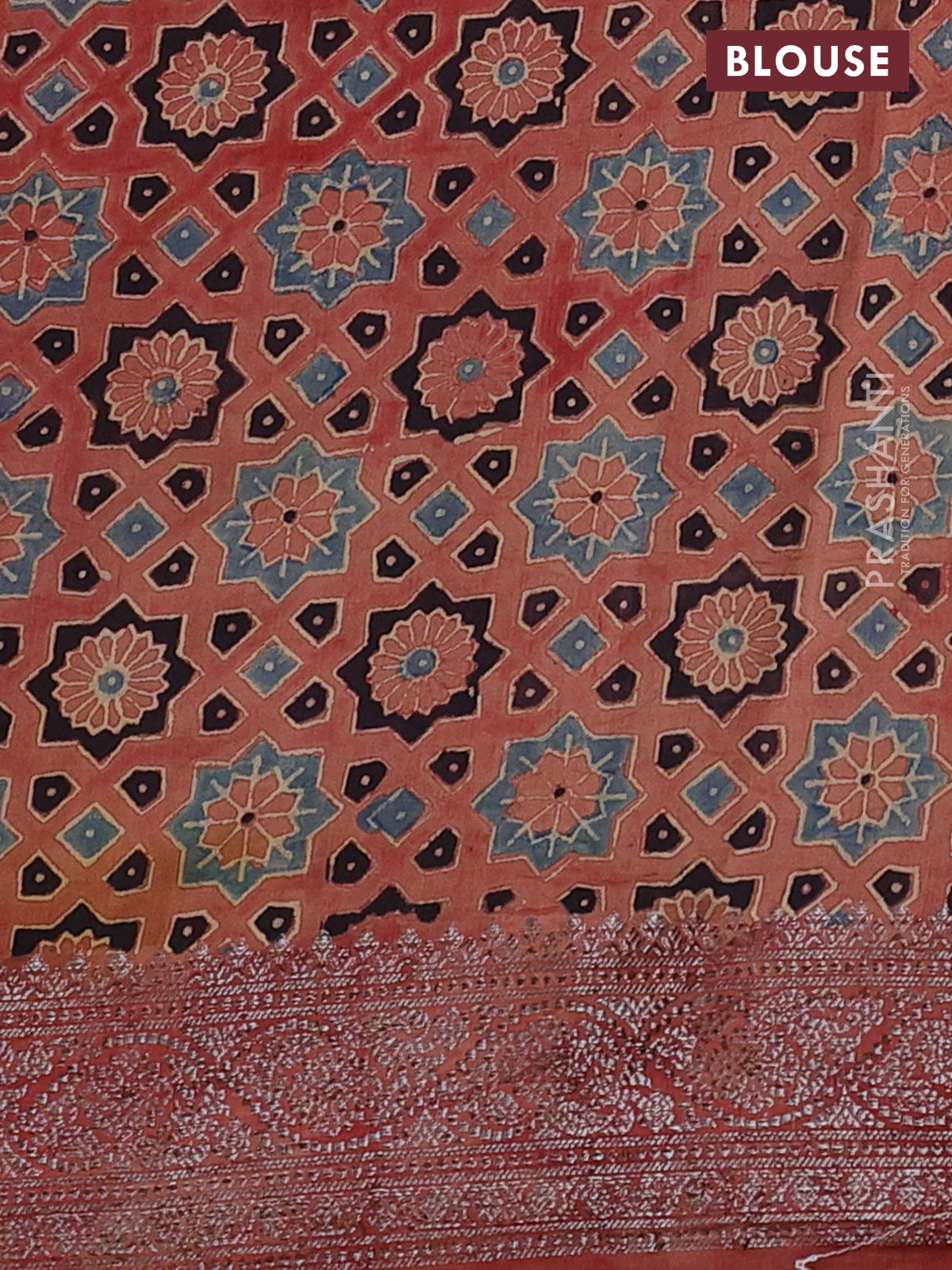 Chiniya silk saree dark mustard and rust shade with plain body and woven border