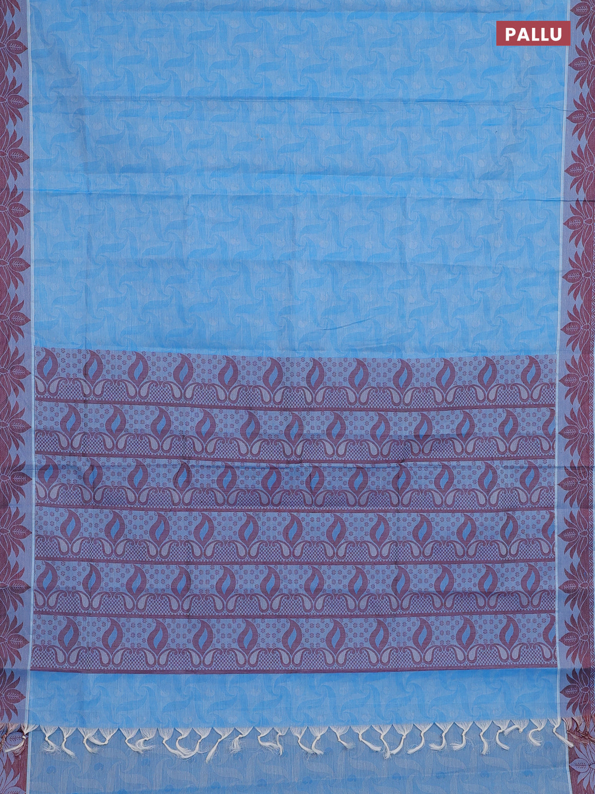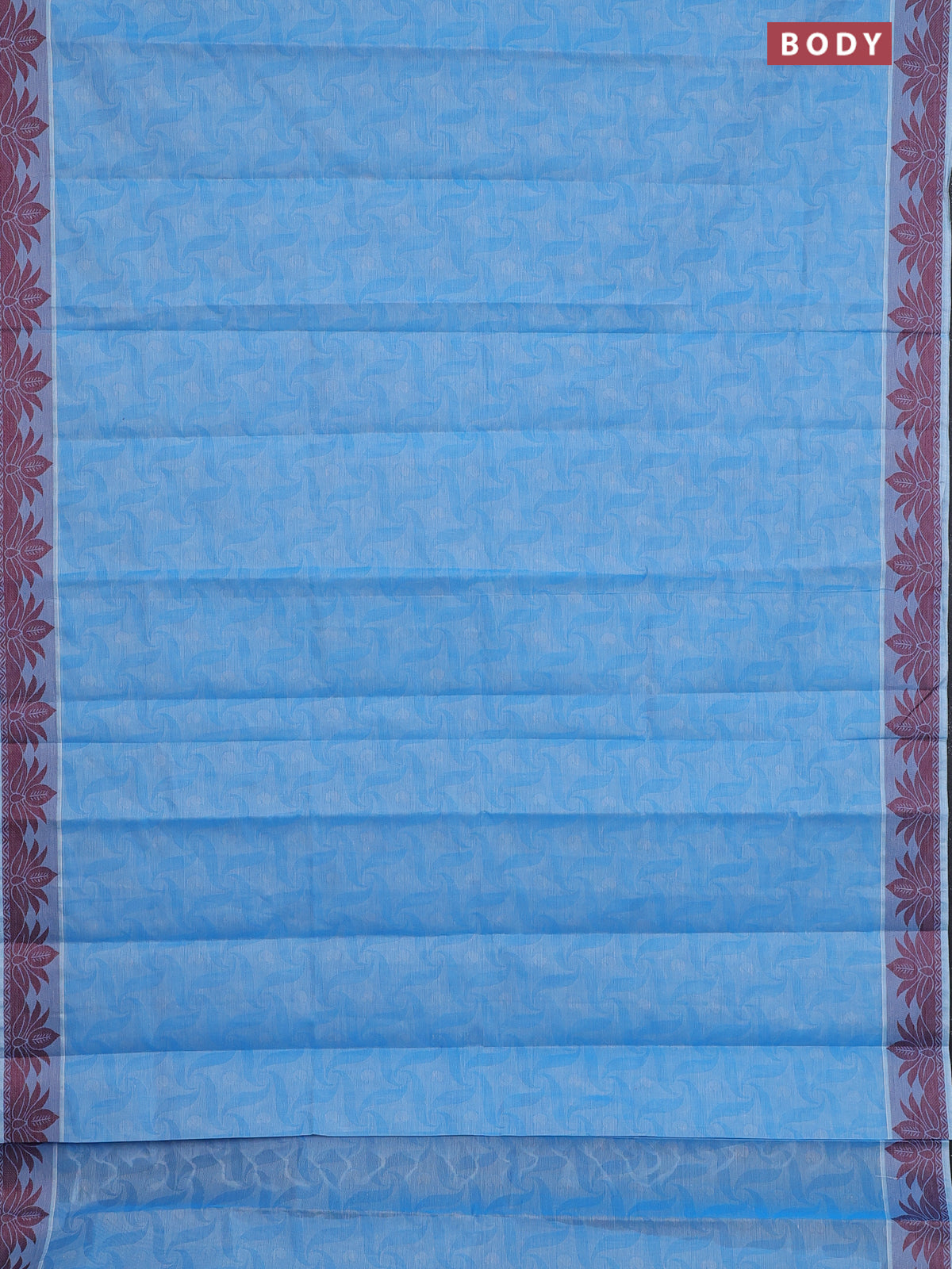 Coimbatore cotton saree blue and maroon with allover self emboss and thread woven border