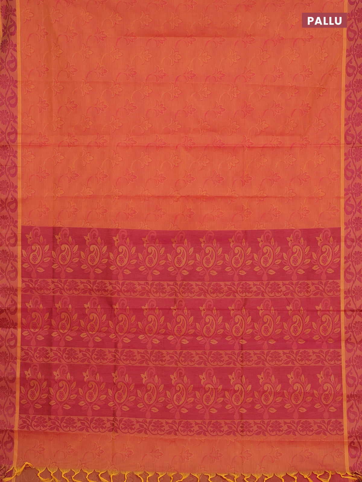 Coimbatore cotton saree dual shade of orange and pink with allover self emboss and thread woven border