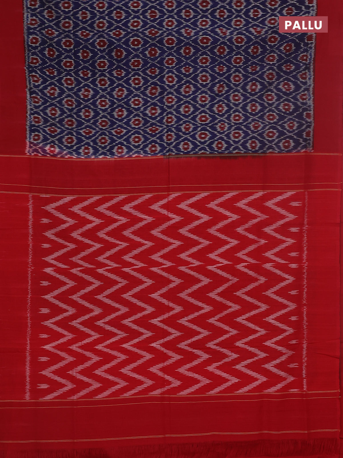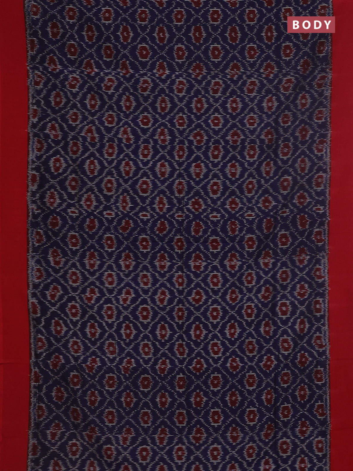 Ikat cotton saree blue and maroon with allover ikat weaves and simple border