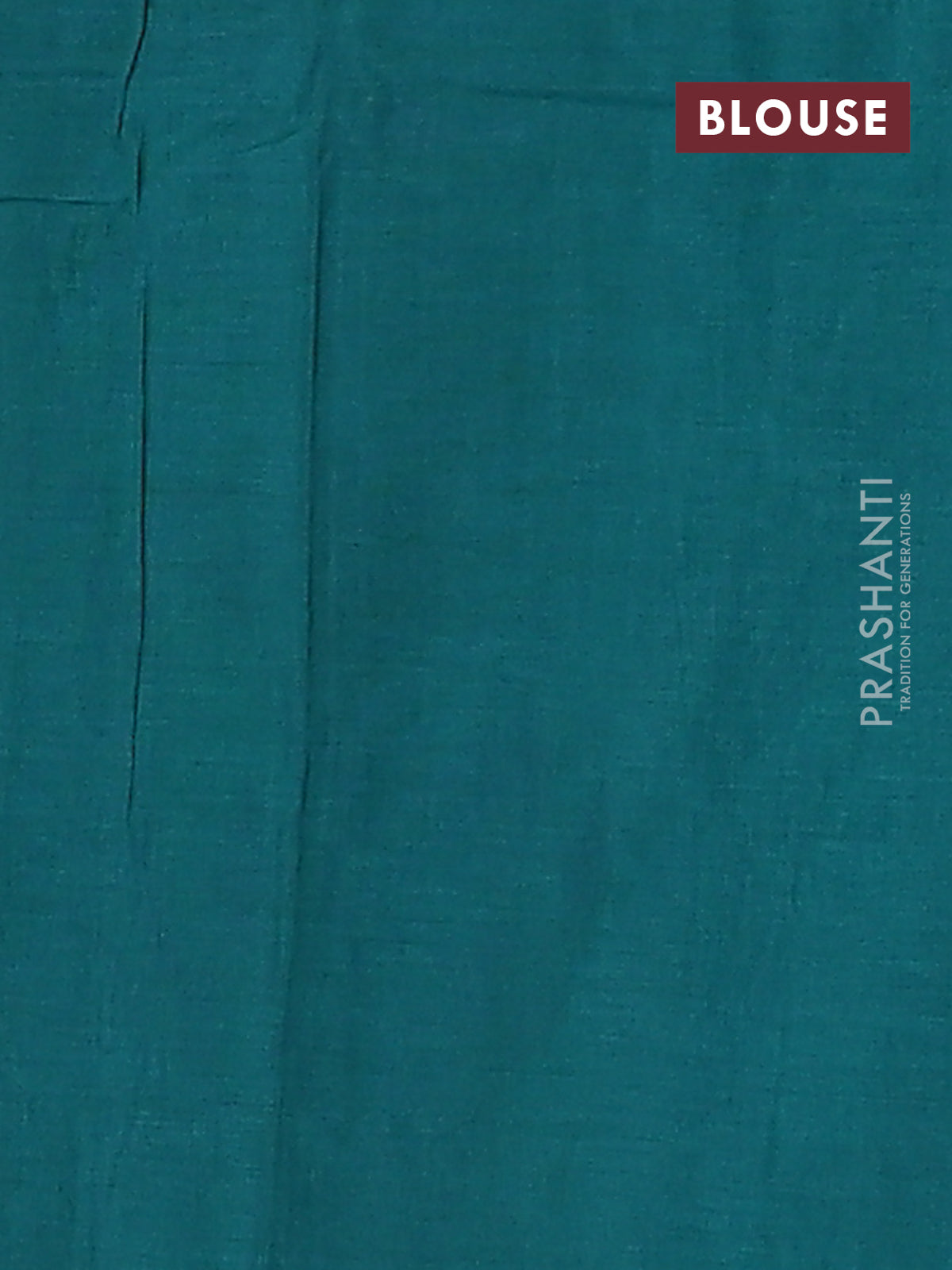 Ikat cotton saree cream and teal green with allover ikat weaves and simple border