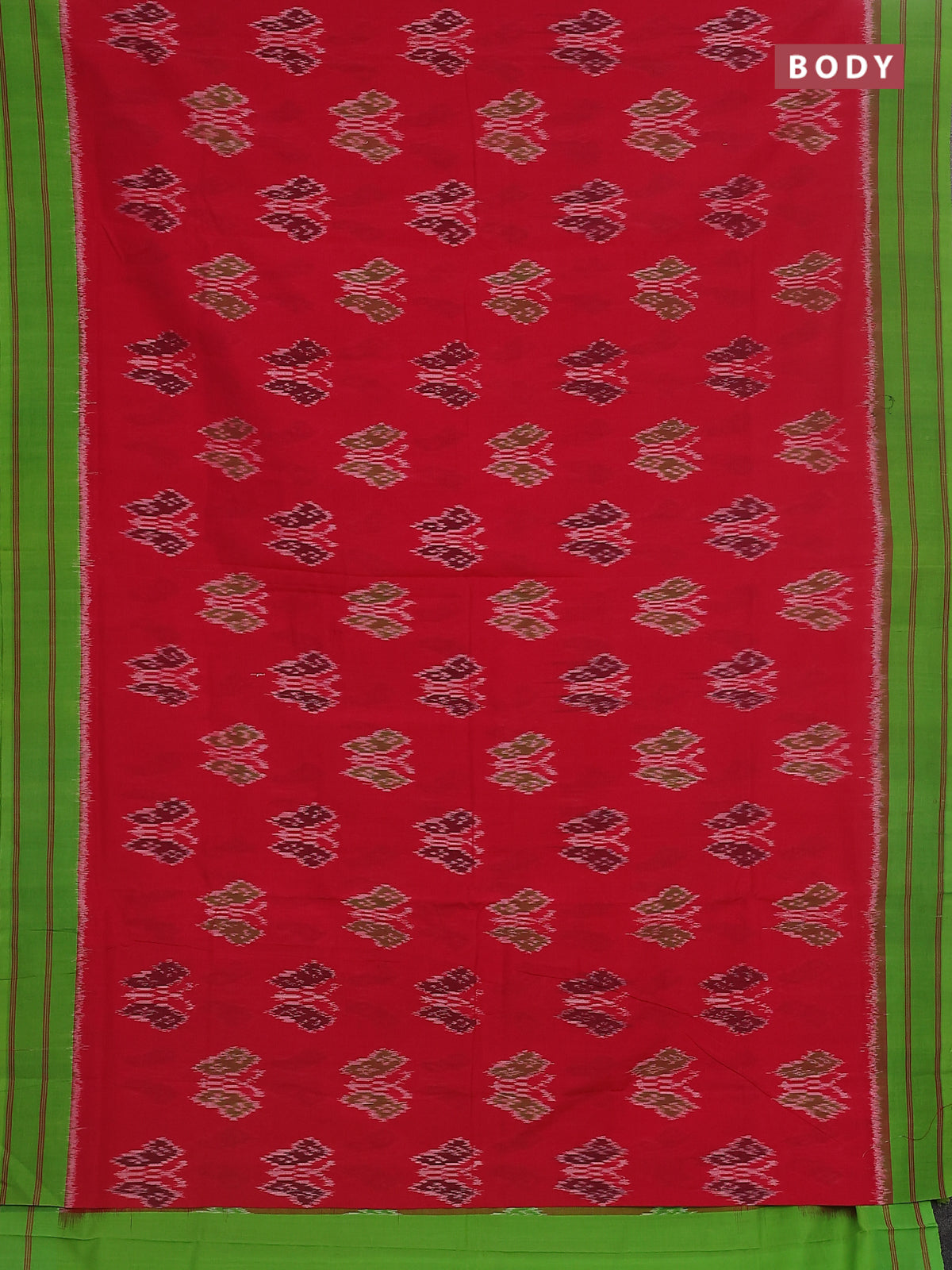 Ikat cotton saree pink and light green with allover ikat butta weaves and simple border