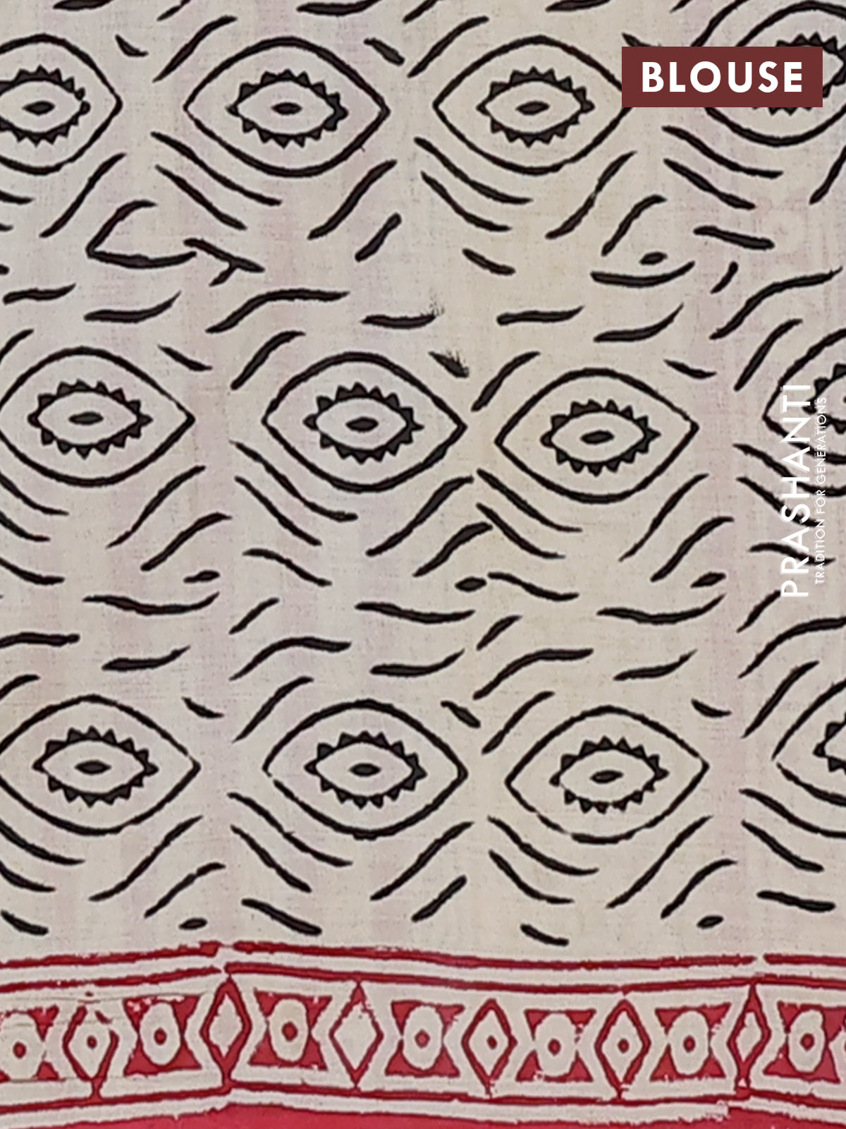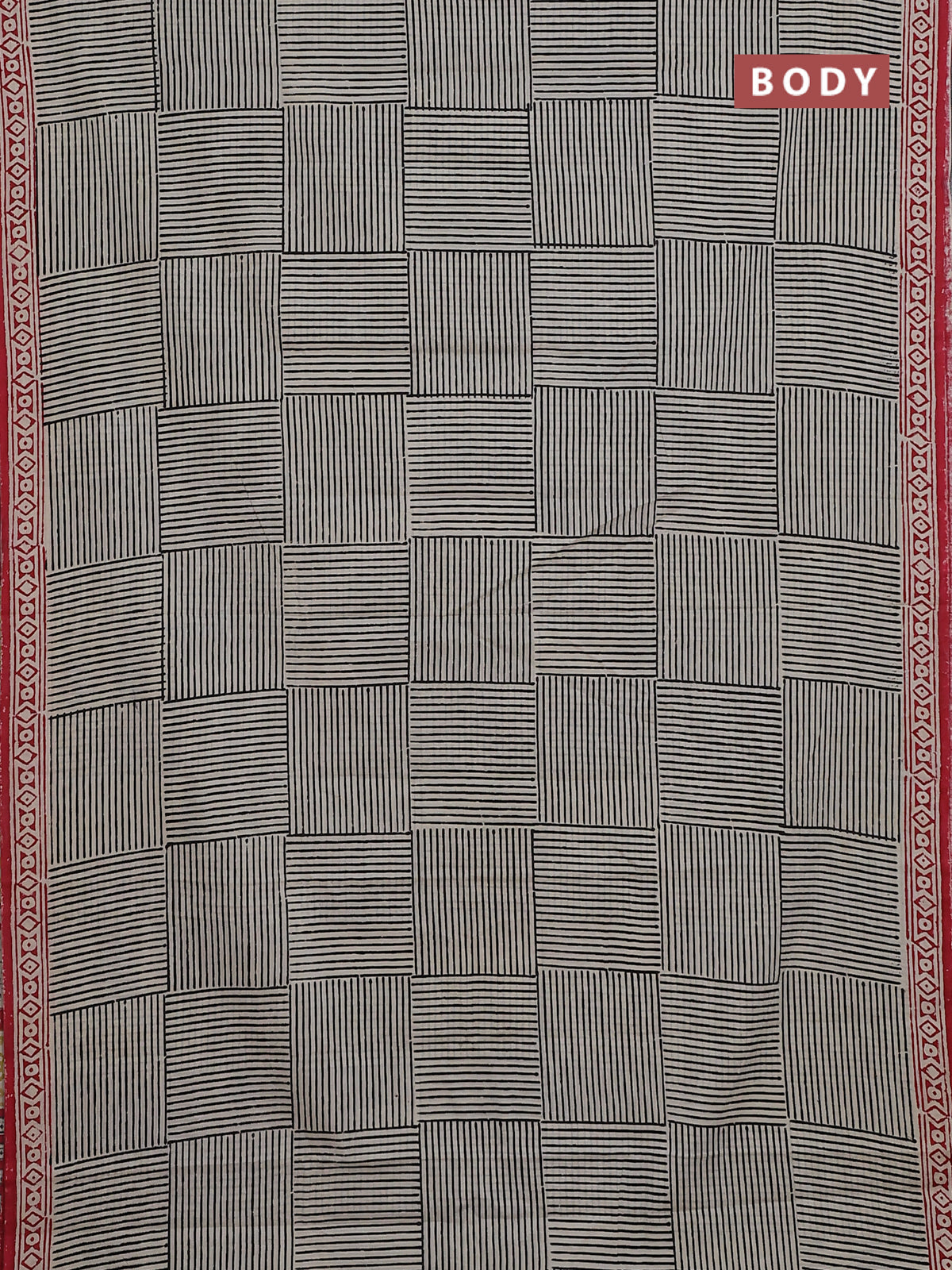 Jaipur cotton saree beige black and maroon with allover stripe pattern and printed border
