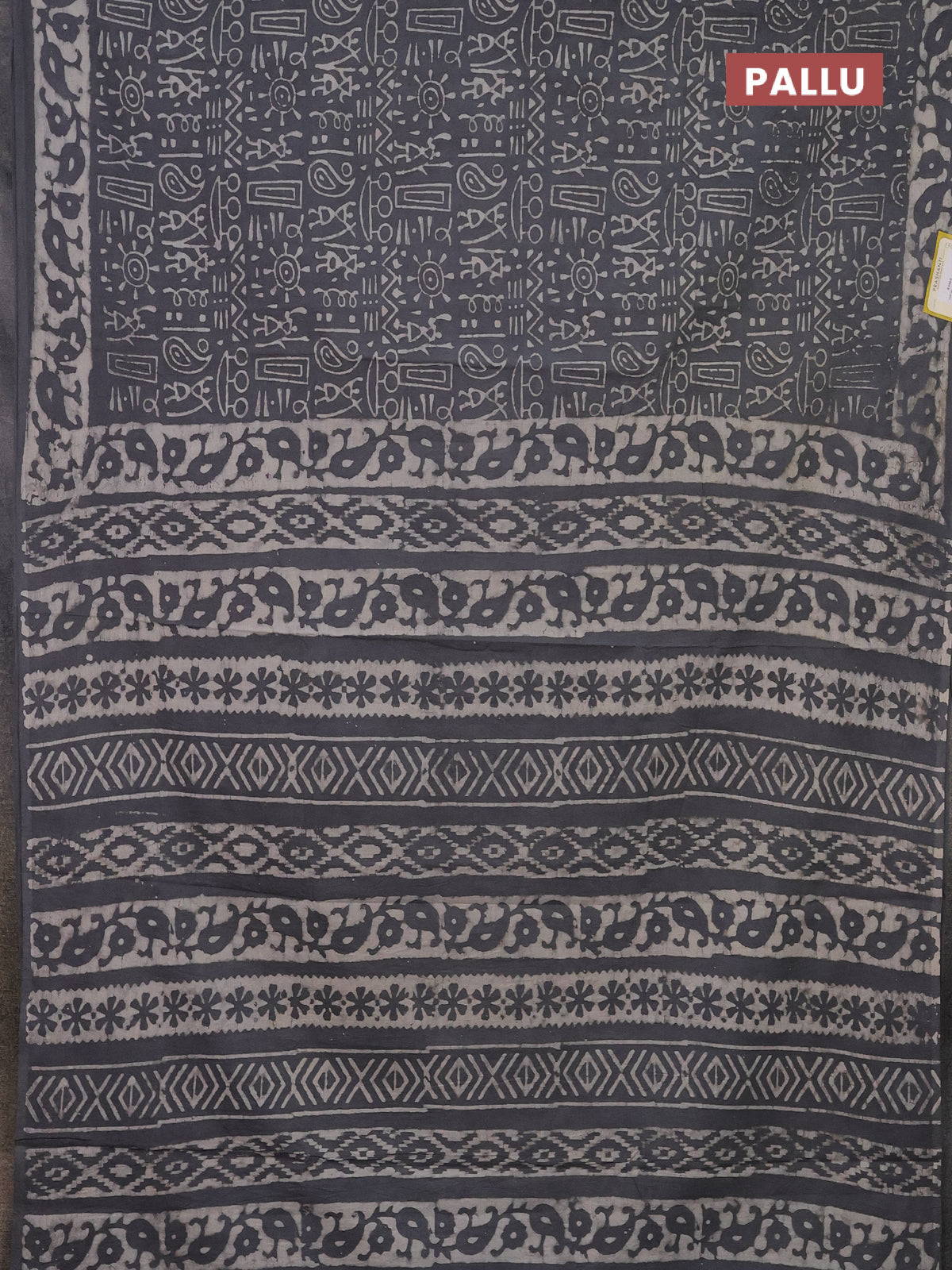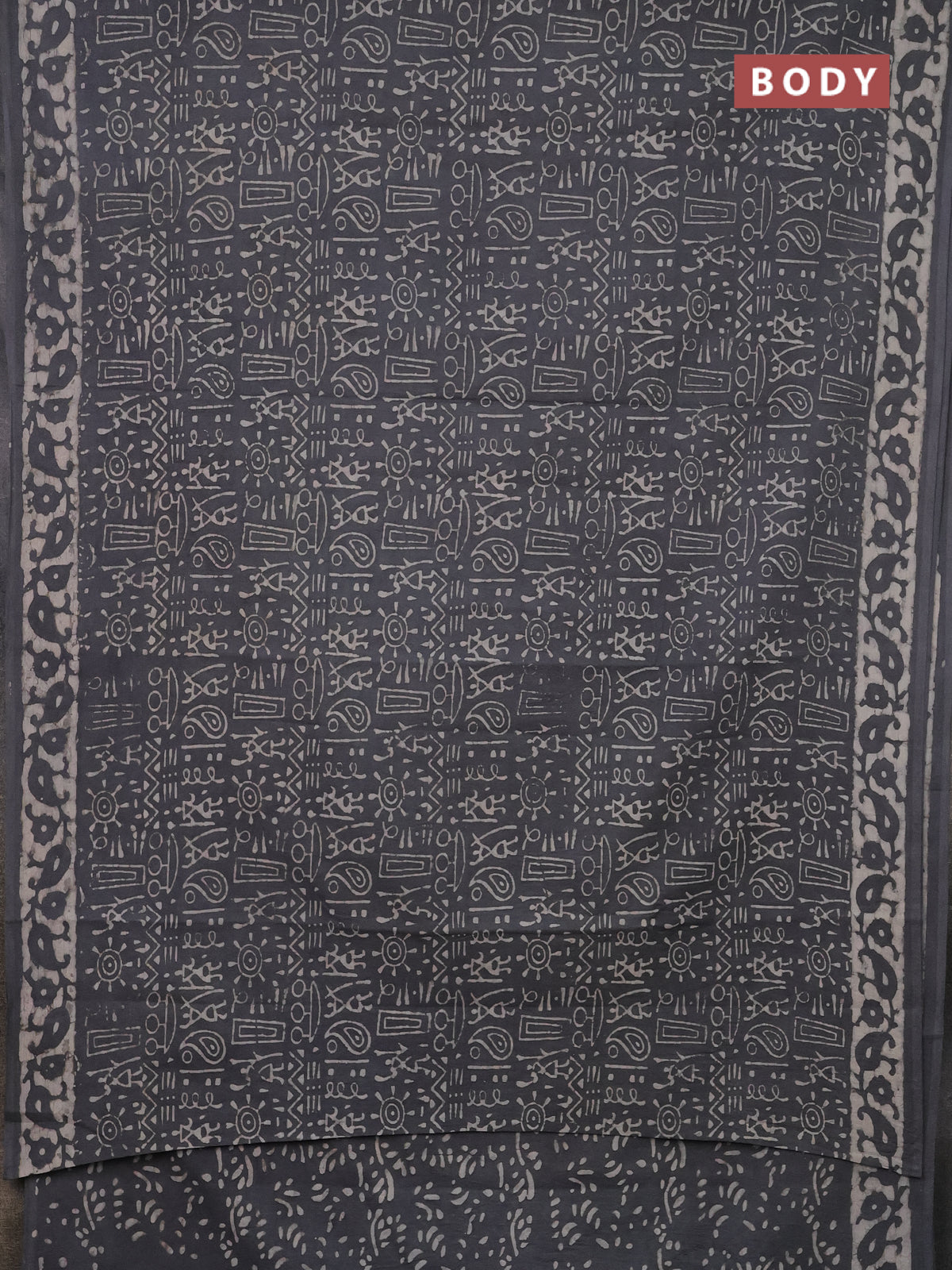 Jaipur cotton saree grey with allover warli and printed border