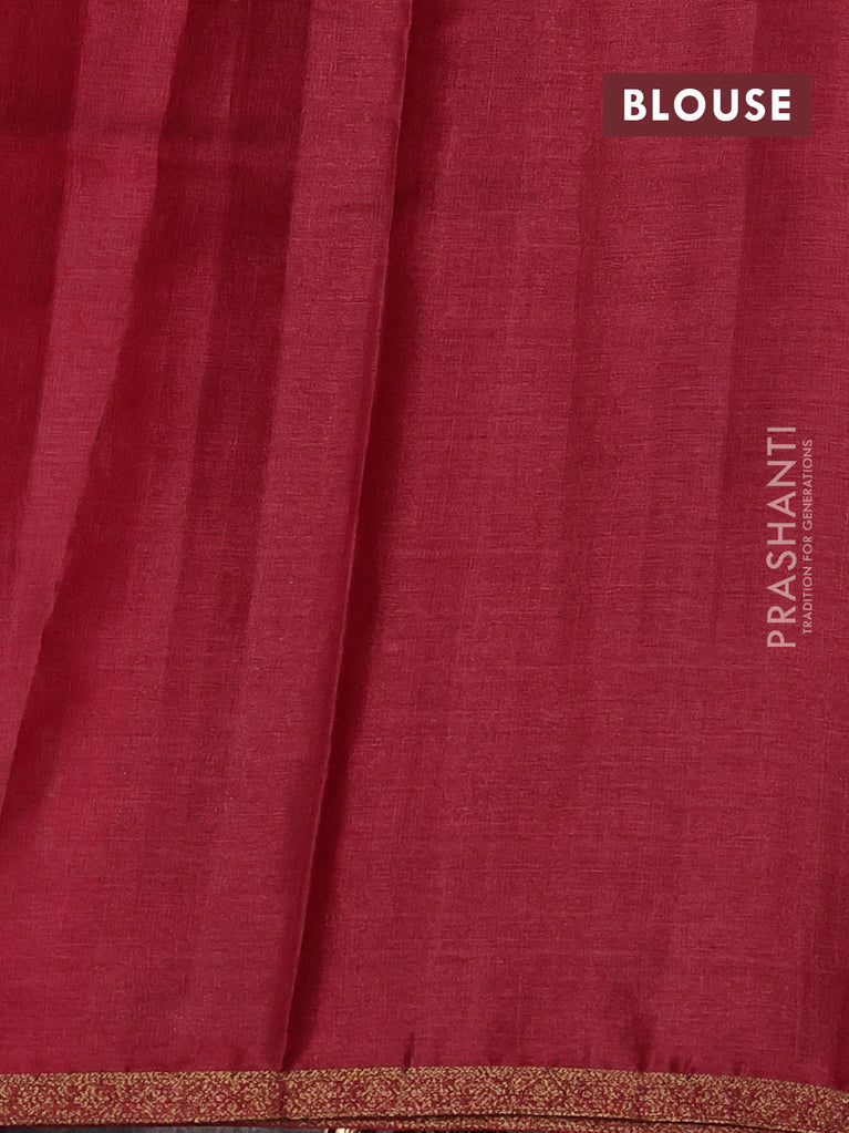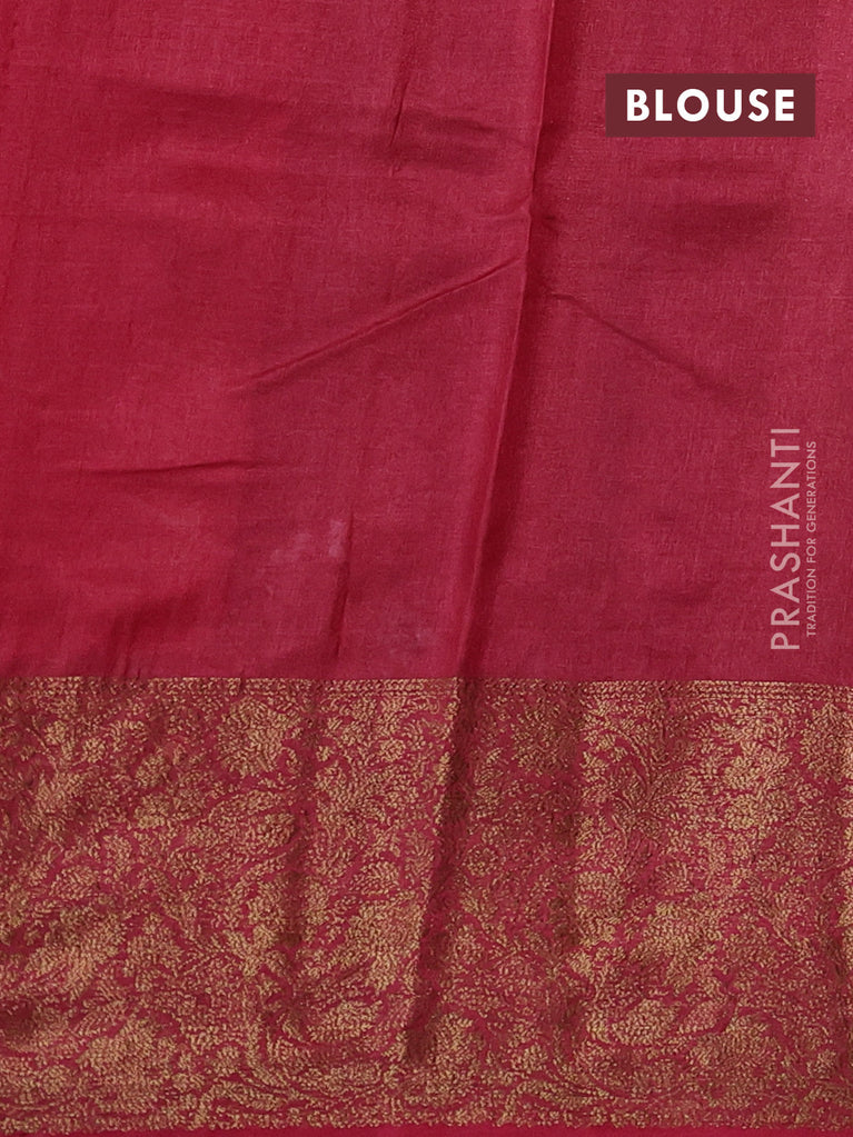 Banarasi tussar silk saree green and maroon with thread & zari woven buttas and woven border