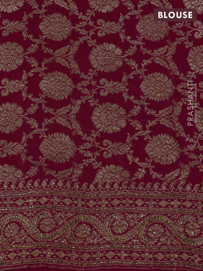 Banarasi crepe saree pink with allover woven buttas & stone work and beaded work border
